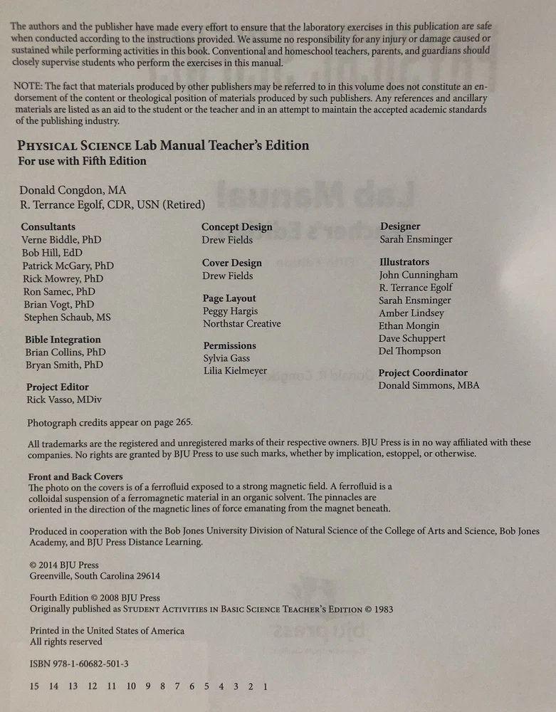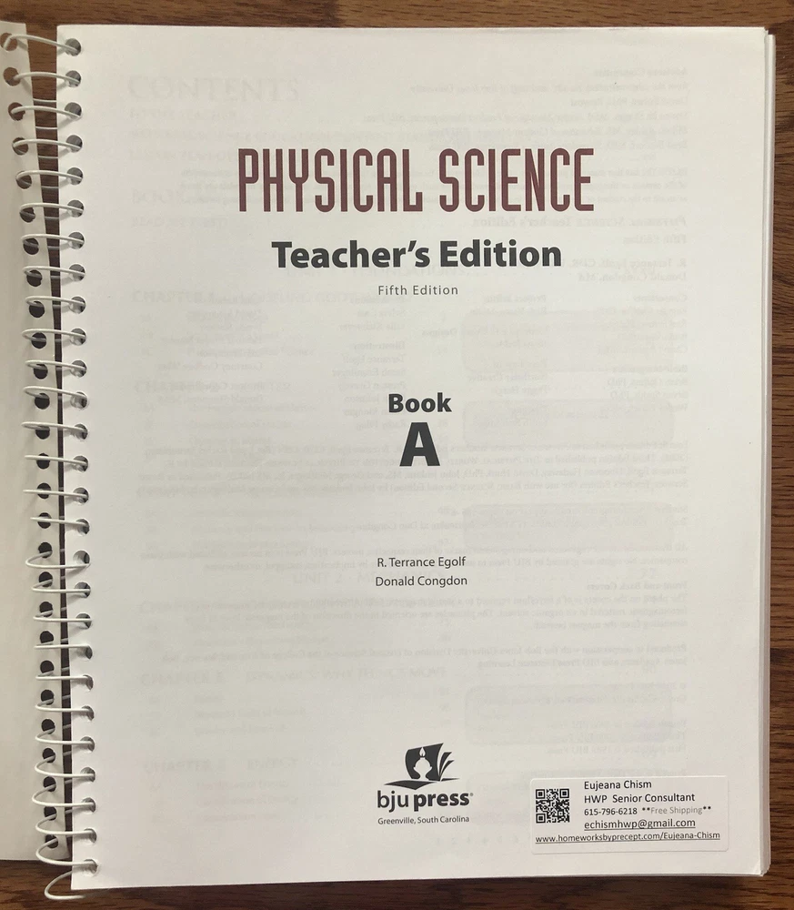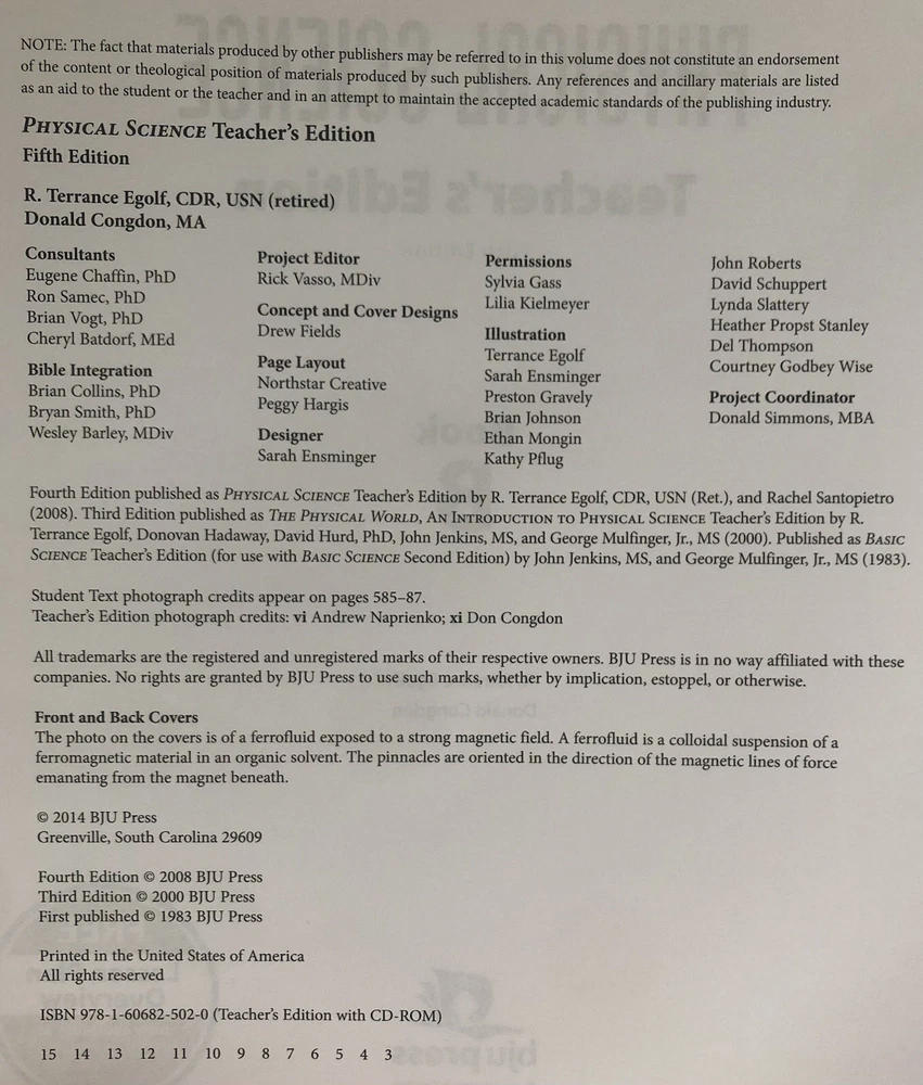 -BJU Physical Science 5th Edition Teacher Edition Books A and B and Lab Key -CD-ROM is included with book A, but is has NOT been tested -These are used books in good condition: -The pages of all books appear clean and unmarked, aside from minimal signs of wear -The covers of all books show some signs of wear -See pictures for details -If you decide to purchase these books, feel free to leave feedback or a review! We are a small business and any feedback helps -Be sure to check out our other listings for more used homeschool books!