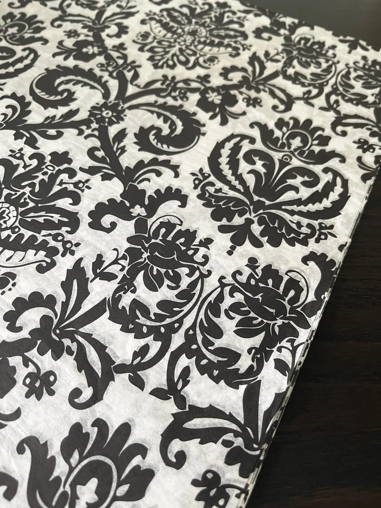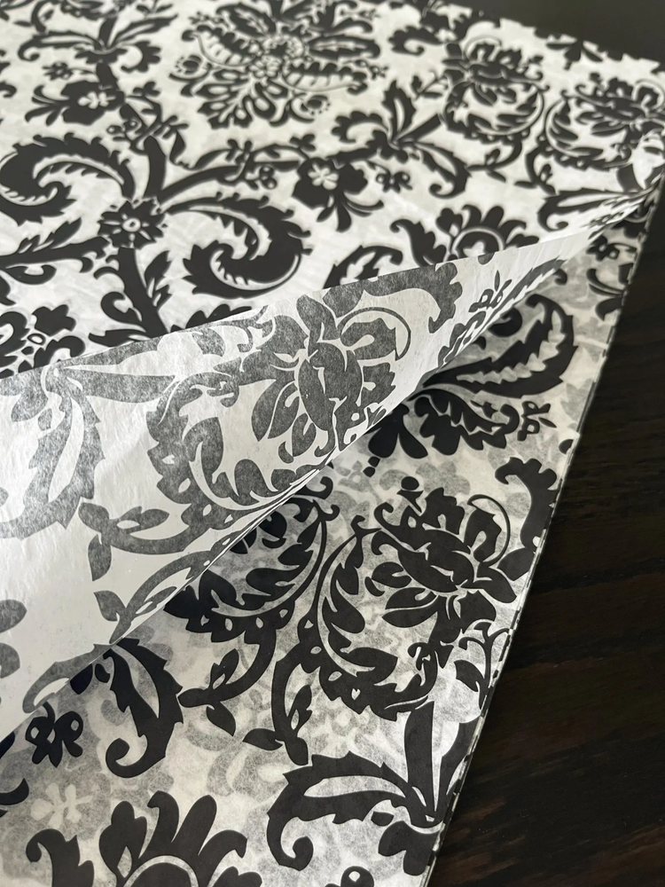 BLACK FLOURISH Design Print Tissue Paper Sheets Choose Size & Package Amount