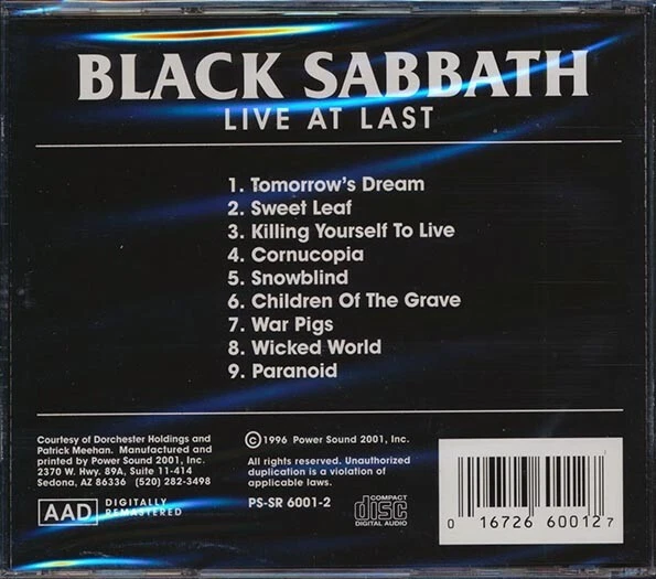 You are bidding on BLACK SABBATH Live At Last This CD is Brand New and Sealed. This listing has been verified on Discogs before listing and will be shipped via USPS. Thanks for looking. Good Luck and Have Fun!