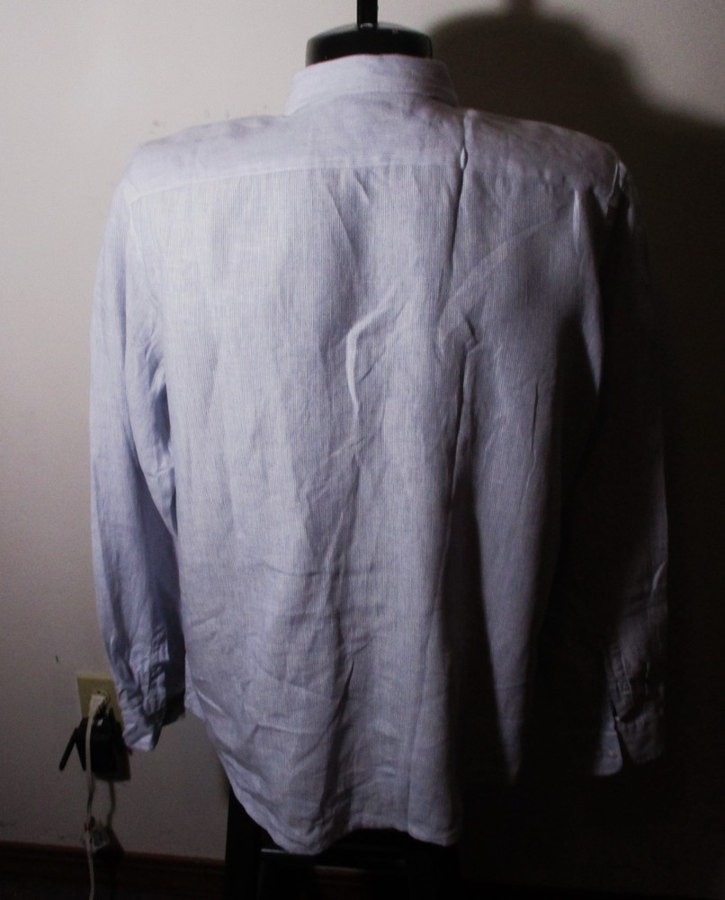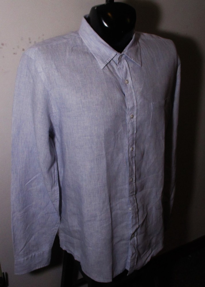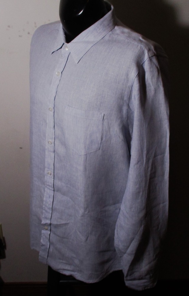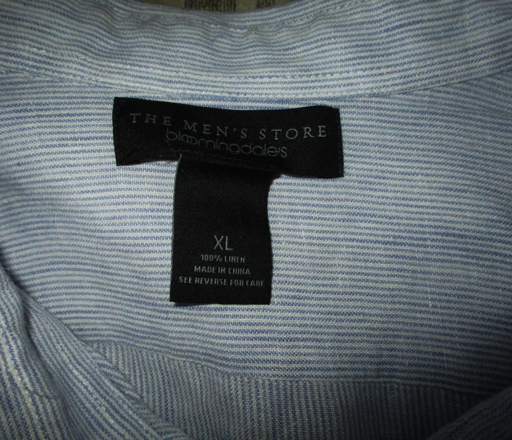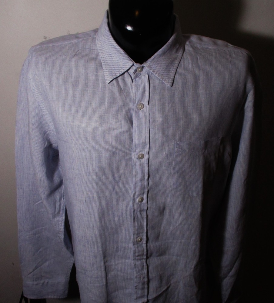 See my EBAY STORE at “SAMTPC53” to view 100’s more of my Men's SHIRTS!!! Combine Shipping: (on multiple items you pay full price on heaviest item first and then HALF PRICE shipping on ALL other clothes items. Men's Long Sleeve 100% Linen Shirt. Brand: BLOOMINGDALE'S. Description: men's 100% Linen BLOOMINGDALE'S long sleeve shirt , button front, button cuffs, pocket on front, see pics Color: Blue. Size: XL (please see measurements). Measurements: 23" armpit to armpit, 32" shoulder to hem, 22" insleeve. Material: 100% Linen. Condition: Very Good condition.
