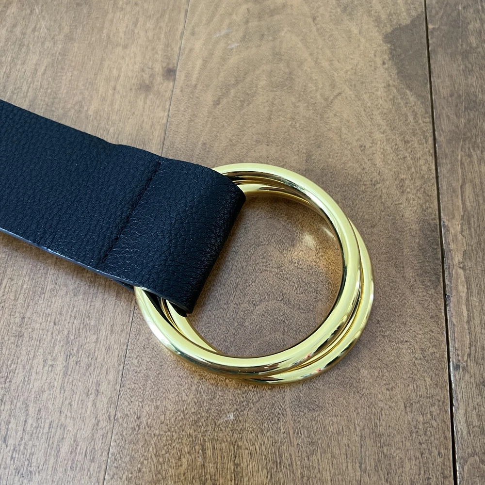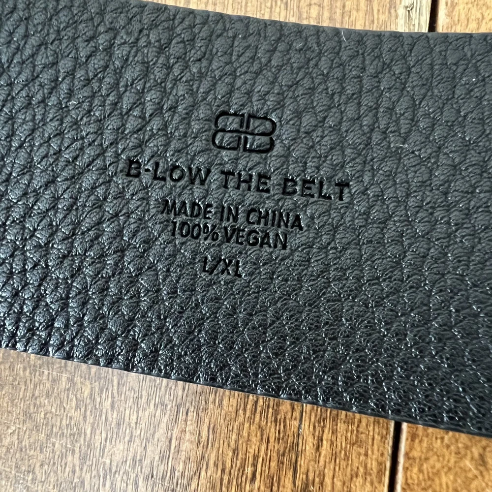 Add some bohemian flair to your wardrobe with this black pebbled tumble belt from B-Low The Belt. Made from high-quality faux leather, this wide belt features a double buckle and adjustable strap for a custom fit. The gold-plated hardware adds a touch of glamour, while the solid black color and lack of embellishments make it a versatile accessory for any outfit. Perfect for festivals, travel, or everyday wear, this fashion belt is a must-have for any stylish woman. The belt is available in size L/XL and is designed to fit most waist sizes. Whether you're dressing up or down, this B-Low The Belt will add a touch of American classic and bohemian style to your look.