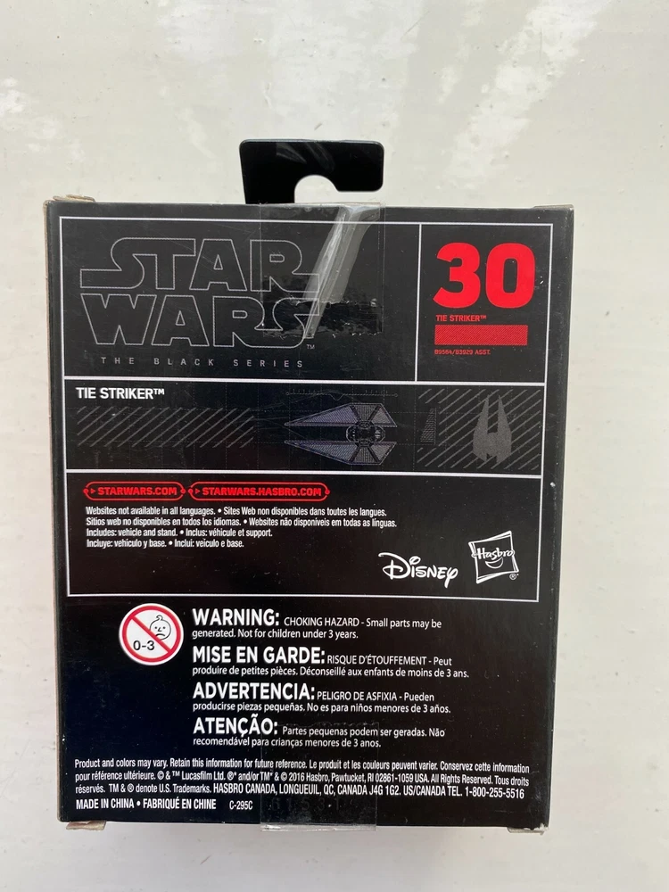 BNIB STAR WARS BLACK TITANIUM SERIES 30 TIE STRIKER FIGHTER STARSHIP VEHICLE This product data sheet is originally written in English. YOU ARE BUYING A TIE STRIKER STARSHIP VEHICLE MADE BY HASBRO - FROM THE STAR WARS BLACK SERIES EXPERTLY DETAILED AND WILL LOOK GREAT ON DISPLAY! BRAND NEW IN PACKAGING WHICH HAS NEVER BEEN OPENED! SLIGHT WEAR TO PACKAGING APPROX 4" TALL CHEAPEST BUY IT NOW ON EBAY YOU CAN NO LONGER BUY THIS FIGURE IN THE SHOPS SO IT IS BECOMING INCREASINGLY HARDER TO FIND - ALSO NOT MANY OTHERS ON EBAY, SO DON'T MISS OUT ON BUYING!! CHECK OUT ALL THE OTHER ACTION FIGURES I HAVE FOR SALE IN MY SHOP AT GREAT PRICES, WITH MASSIVE POSTAGE DISCOUNTS YOU ARE BUYING A TIE STRIKER STARSHIP VEHICLE MADE BY HASBRO - FROM THE STAR WARS BLACK SERIES EXPERTLY DETAILED AND WILL LOOK GREAT ON DISPLAY! BRAND NEW IN PACKAGING WHICH HAS NEVER BEEN OPENED! SLIGHT WEAR TO PACKAGING APPROX 4" TALL CHEAPEST BUY IT NOW ON EBAY YOU CAN NO LONGER BUY THIS FIGURE IN THE SHOPS SO IT IS BECOMING INCREASINGLY HARDER TO FIND - ALSO NOT MANY OTHERS ON EBAY, SO DON'T MISS OUT ON BUYING!! CHECK OUT ALL THE OTHER ACTION FIGURES I HAVE FOR SALE IN MY SHOP AT GREAT PRICES, WITH MASSIVE POSTAGE DISCOUNTS Brand Hasbro Type Vehicle Material Die-cast Franchise Star Wars Character Family Star Wars EAN Does not apply