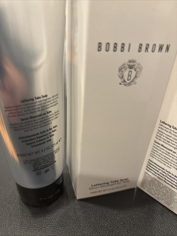 This product is a Bobbi Brown Lathering Tube Soap, specifically designed for normal skin on the face. The soap comes in a 4.2 oz tube and is brown in color. It falls under the "Body Soaps," "Bath & Body," and "Health & Beauty" categories.