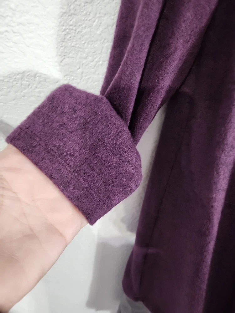 Elevate your wardrobe with this stunning BOBEAU Deep Purple Soft Brushed Open Draped Wallace Cardigan. This versatile piece is perfect for any occasion, whether it's a casual day out or a formal event. The cardigan features an open front neckline and closure, with long sleeves and a relaxed fit for ultimate comfort. The fabric is made of 75% rayon, 21% polyester, and 4% spandex, ensuring a super soft knit that stretches to fit all seasons. The cardigan is designed with a solid pattern and a beautiful purple color that will add a touch of elegance and bohemian vibe to your outfit. This draped cardigan top is perfect for women of size M and is part of the Wallace Brushed Cardigan product line. New with tags