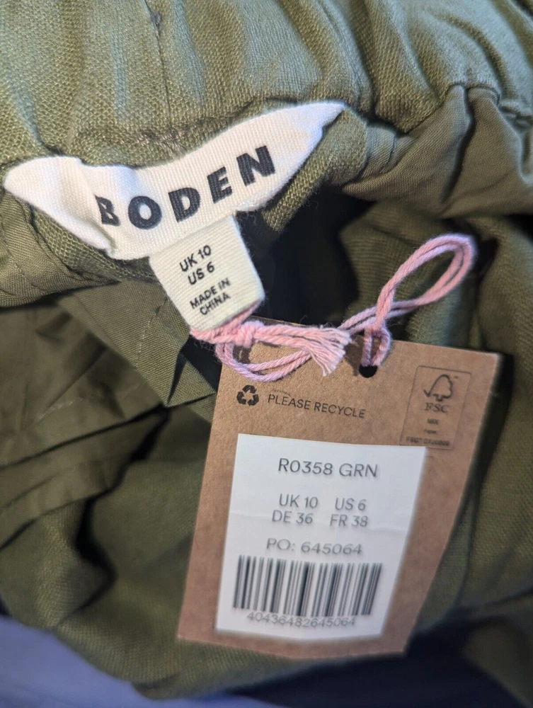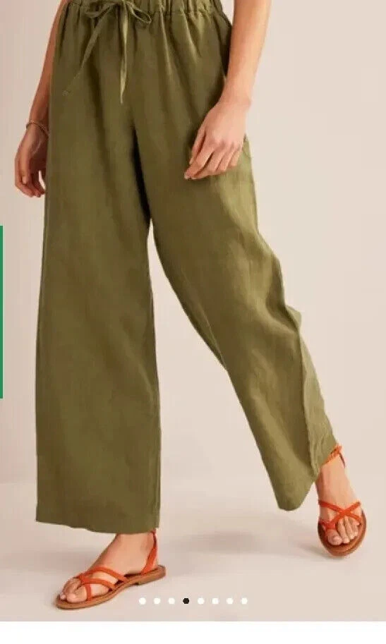 BODEN Relaxed Pull-on Linen Trousers SIZE UK10 BODEN Relaxed Pull-on Linen Trousers SIZE UK10 Thanks for coming to the Fashion Warehouse Elevate your wardrobe with these stylish and comfortable Boden trousers. The relaxed fit and cargo style make them perfect for everyday wear, while the linen material ensures breathability and comfort. The trousers come in a beautiful shade of green and are available in size UK10. The Boden brand is known for its quality and durability, making these trousers a great addition to any wardrobe. They are perfect for women who want to look stylish while staying comfortable. These trousers are versatile and can be dressed up or down, making them perfect for any occasion. Returns About Us Aftercare Leaving Feedback Yes, of course we will take your returns back, however please note the following policies to prevent any issues being raised. 1 You must return the original item, in its original packaging, unworn, unused with no rips, smells or stains this includes human hair 2 When you wish to return our item, please put in the reason for the return, if you are falsely claiming a return was not as described. we will report this to our platform provider to ensure you are barred to try and gain a free return 3 All items are as described, the colours and sizes may look different on a picture to real life, this is something you have to consider. The Fashion Warehouse, is a company owned by theBatteryShop Ltd we are based in Northern Ireland and have been around since 1998 by the owner the Castle Group in UK. We pride ourselves in ensuring that all customers get a quality product, and very affordable pricing. The After Care that we provide is answered within the platform in which you have purchased our stock, we offer no service outside of this arena and ask this is respected. This is to protect both parties from scammers, false claim backs and counter claims, the platform normally act as judge on outcomes and expect full communication to stay within their realm of business. Please kindly note, we do not answer emails via the platform in real time. Please also Kindly note, anger, rudeness and abuse is never tolerated. Feedback is very important to our little business, however we always tend to have customers who raise a negative feedback and do nothing to get us to help them. If you are considering leaving negative feedback, why not reach out to us first using the contact us button to discuss the issue before considering leaving negative feedback