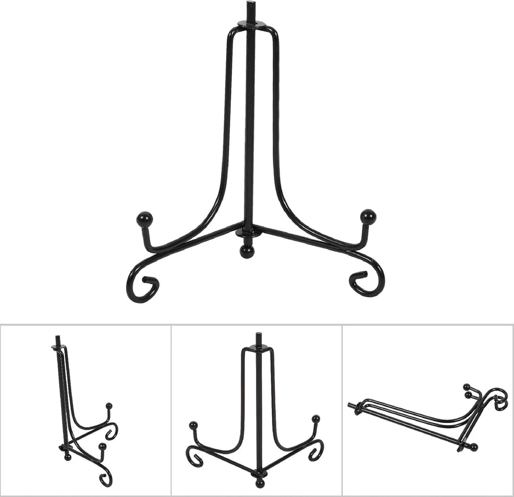 BORDSTRACT Iron Display Stand, 4 to 12 Inch Easel Classic Bowl Plate black Product Details Base Type: Pedestal Assembly Required: No Number of Levels: 1 Manufacturer: BORDSTRACT Item Weight: 1.06 ounces Finish types: iron Batteries required: No Color: black Material: Iron, Metal Brand: BORDSTRACT Item Weight: 0.03 Kilograms Finish Type: iron Easy to fold: The black easel bracket can be adjusted to maintain balance and fit your decoration size. It will not bend or fall back. It is easy to place on a table or desk, or it can be folded flat for easy storage, saving you a lot of money space Durable and Exquisite: These easel boards are made of iron materials, durable with a quality finish and can be placed on decorative boards, commemorative cards, photo frames, postcards, pictures, books, etc., and the exquisite workmanship can add a touch of artistic charm to your home Wide Applications: You can use picture frame holder stands at home, office, restaurant, etc. to display pictures, introduction cards, small artworks and other items, making plates or artwork more attractive, and showing your good taste for decorations, it can be used to display various items, including: plates, photo frames, plaques, trophies, books, card etc. Good Decoration: The stands are clear with a light frosting can make focus on your showpiece and not the Display Stand, the black wrought iron display rack has an exquisite appearance, which adds charm to your warm home, office, restaurant or bookstore. It is a very good decoration 5 Sizes for Choice: 4-12inch, 4 inch compact and light weight, suitable for small objects, such as biscuits, cards, small artworks, etc. If you want to load plates, 6-8 inches is more suitable for plates. It depends on the diameter of the plate. In addition, 4 inches and 5 inches are suitable for small and light dishes. If you want to install a photo frame, 8-12 inches is suitable