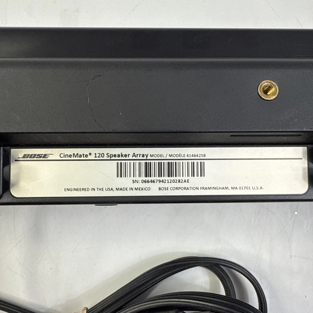 Enhance your movie and music experience with this BOSE CINEMATE 120 SOUNDBAR SPEAKER ARRAY MODEL. This soundbar is designed to provide high-quality audio output and is compatible with various devices via wired connectivity. It has a RMS power of 120 W, which ensures crystal-clear sound quality. The BOSE CINEMATE 120 SOUNDBAR SPEAKER ARRAY MODEL is perfect for those who want to enjoy their favorite movies and music with exceptional audio quality. It is easy to use and comes with a cable only, making it a hassle-free experience. This soundbar is a great addition to your home audio system and is perfect for any room in your home.