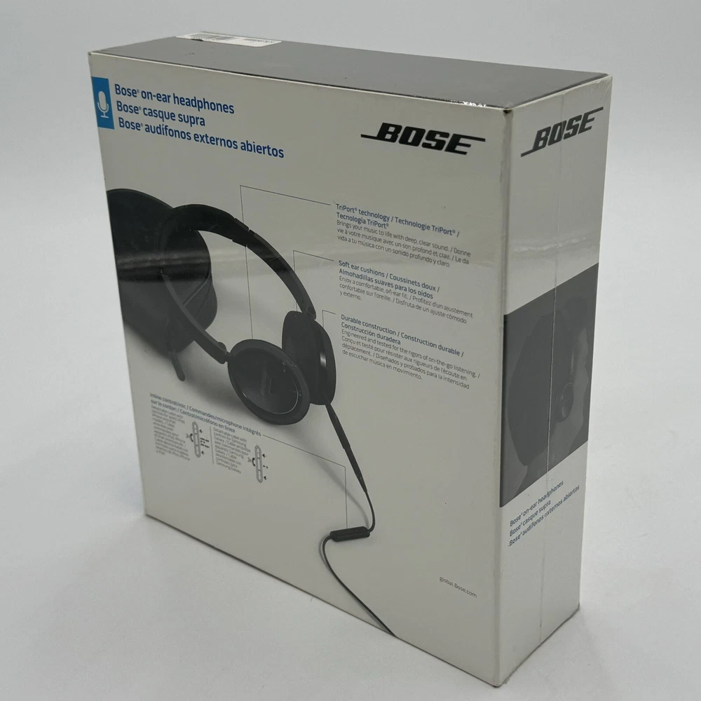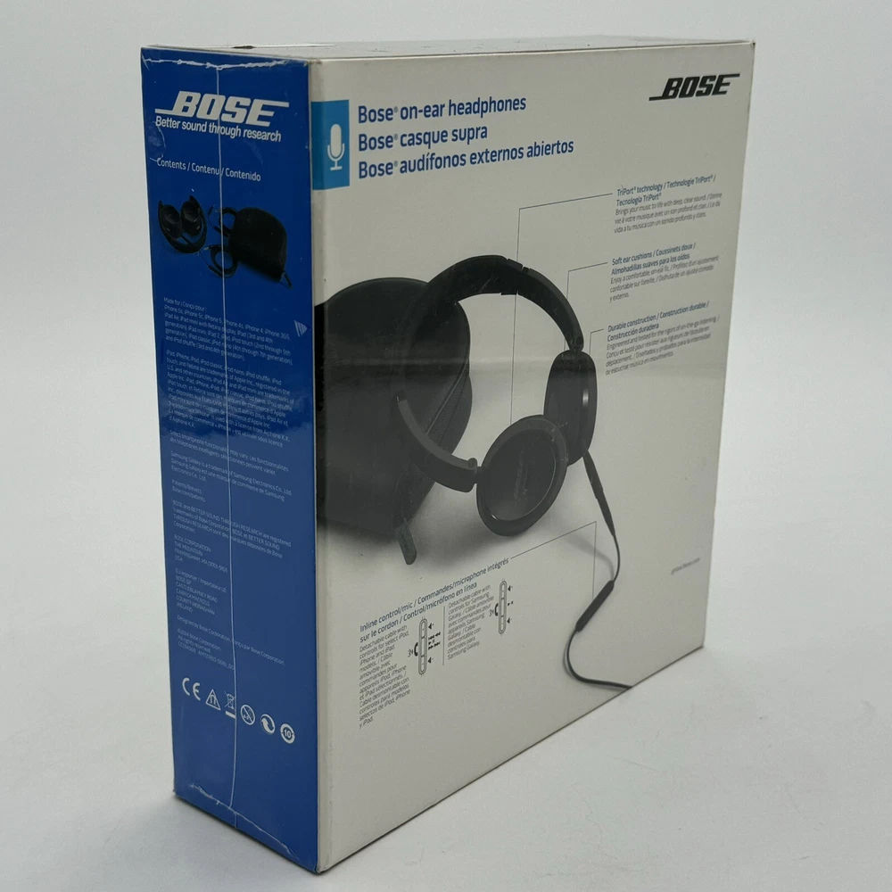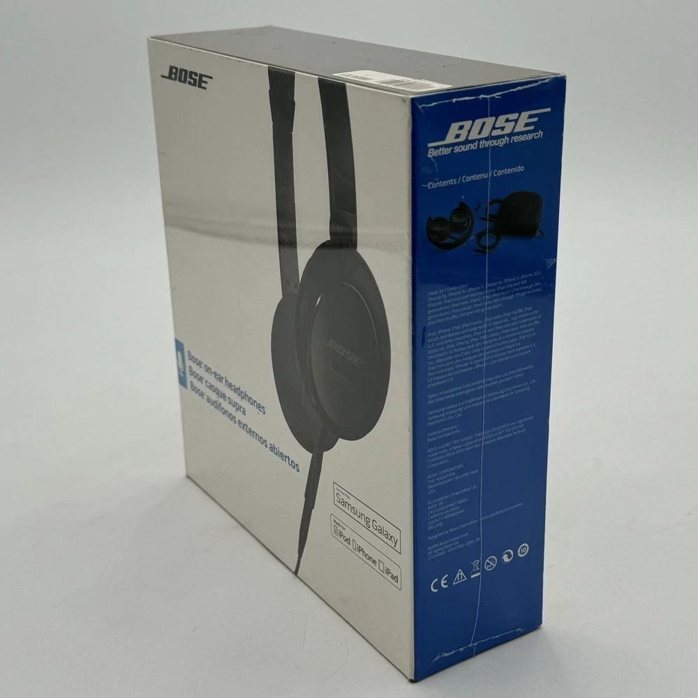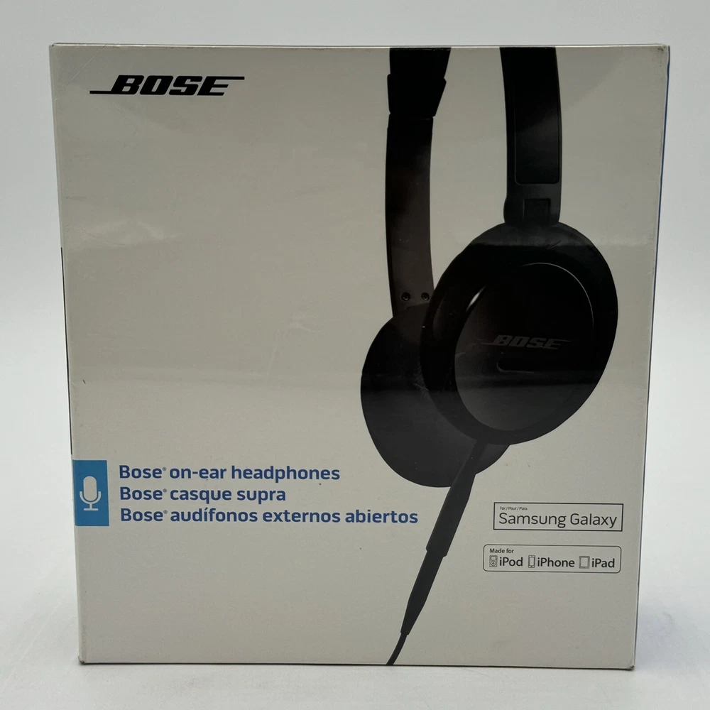 Immerse yourself in your favorite tunes with this premium quality BOSE On-Ear Headphones Wired Headset. Its sleek black design and comfortable ear-pads make it suitable for long hours of music-listening or monitoring. The headphones are compatible with Apple iPod, iPhone, iPad, and Samsung Galaxy devices. New sealed