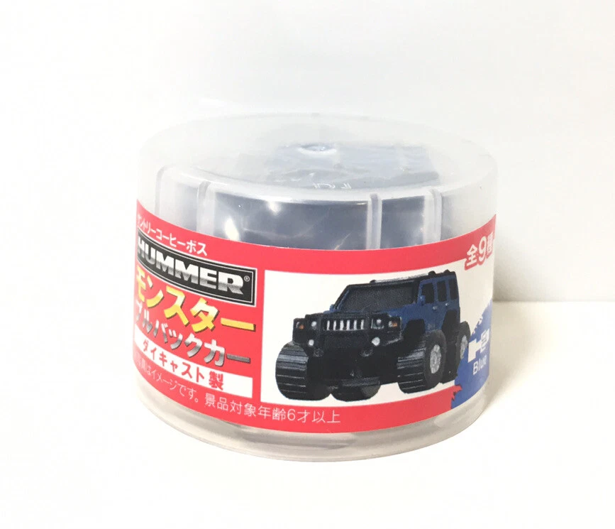 UPC:Does not applyVehicle Type:CarVehicle Make:HummerModel:Coffee BossBrand:SuntoryMaterial:DiecastScale:1/100Character Family:CarsColor:Bluegtin13:Does not apply