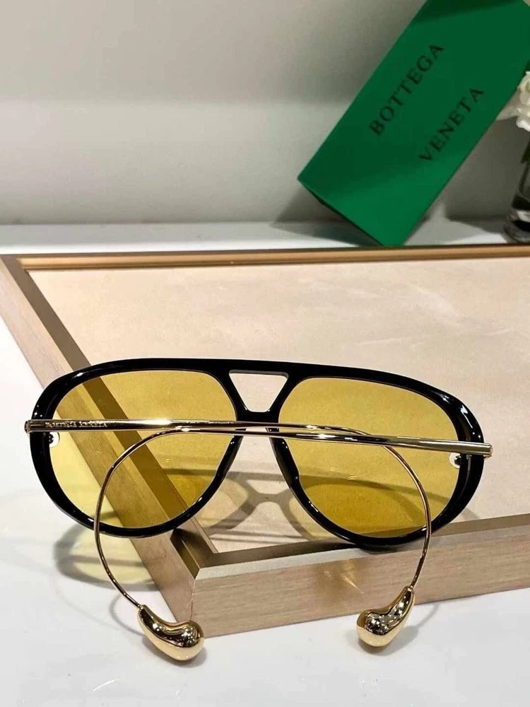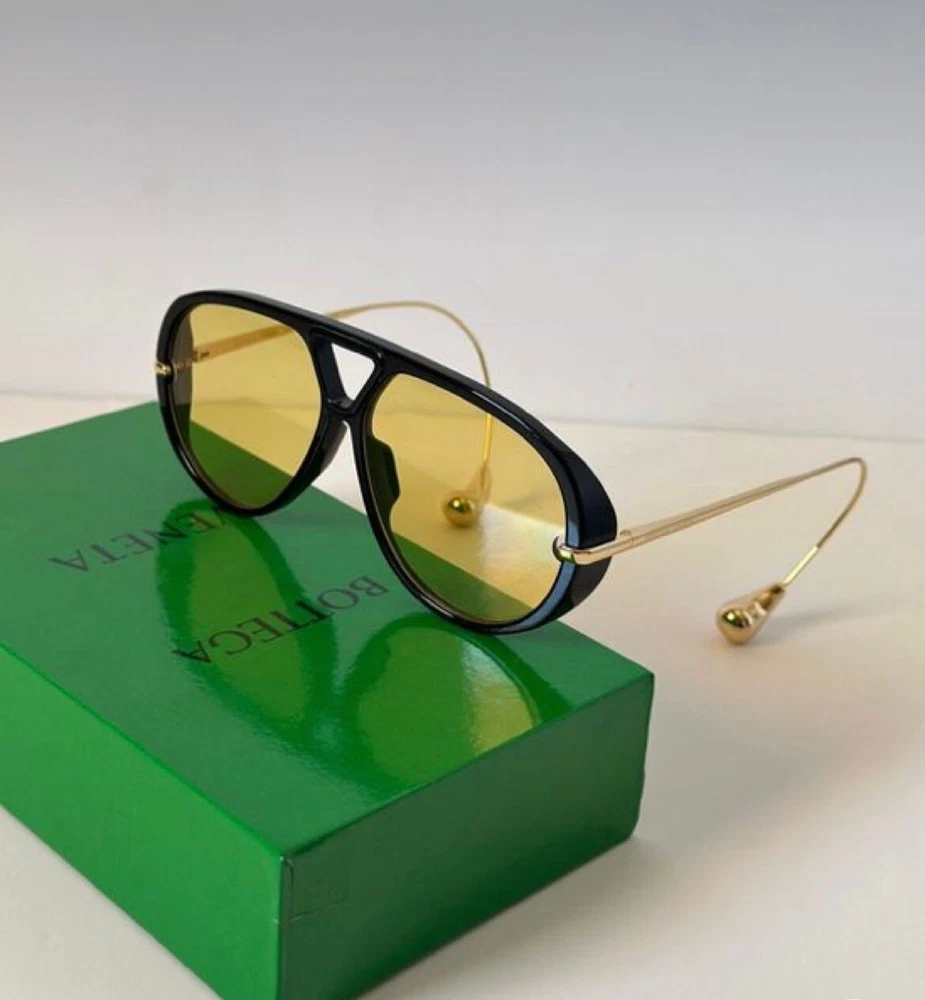 The BOTTEGA VENETA BV1273 Black Gold Sunglasses are a stylish pair of aviator sunglasses designed for unisex adults. The frame color is black with yellow lenses, giving them a bold and fashionable look. With a brand known for luxury and sophistication like Bottega Veneta, these sunglasses are perfect for adding a touch of glamour to any outfit. Ideal for both men and women, these sunglasses are a statement accessory that combines a classic aviator style with a modern twist.