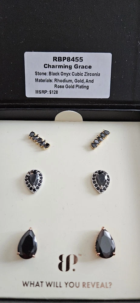 BP Simply Studs RBP8455 "Charming Grace" black Onyx Rhodium, Gold,Rose Gold