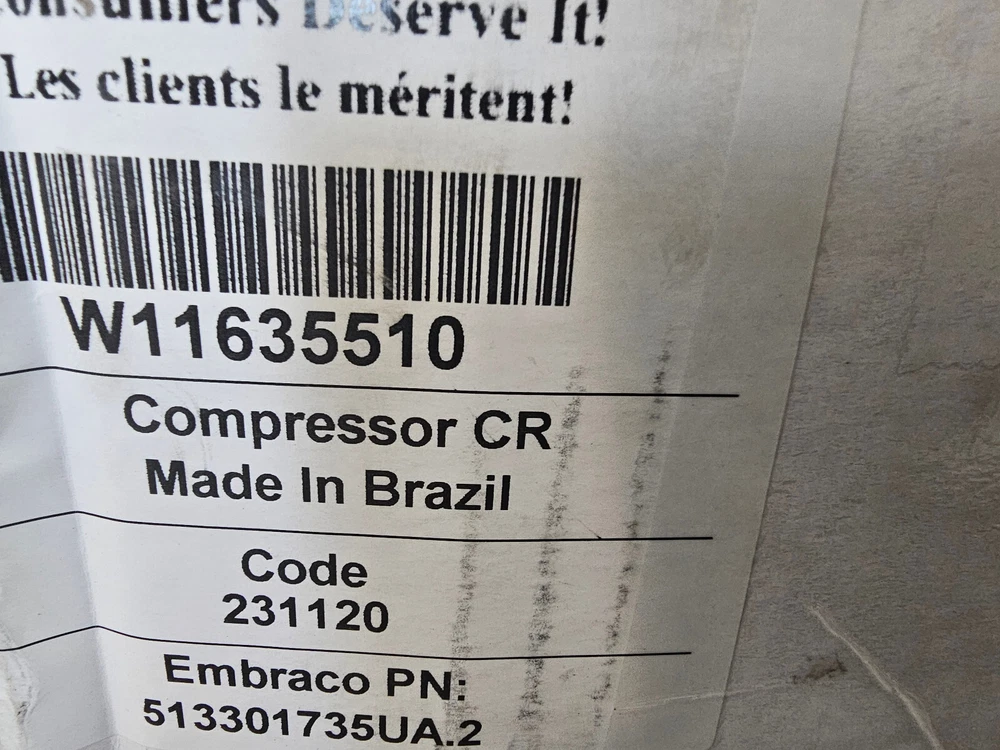BRAND NEW!! WHIRLPOOL REFRIGERATOR COMPRESSOR W11635510 The box was only opened to take pictures and ensure lack of physical damage. Receive SAME DAY shipping when your order is placed before 4pm EST!! Do not hesitate to contact us to verify the part's compatibility with your model.
