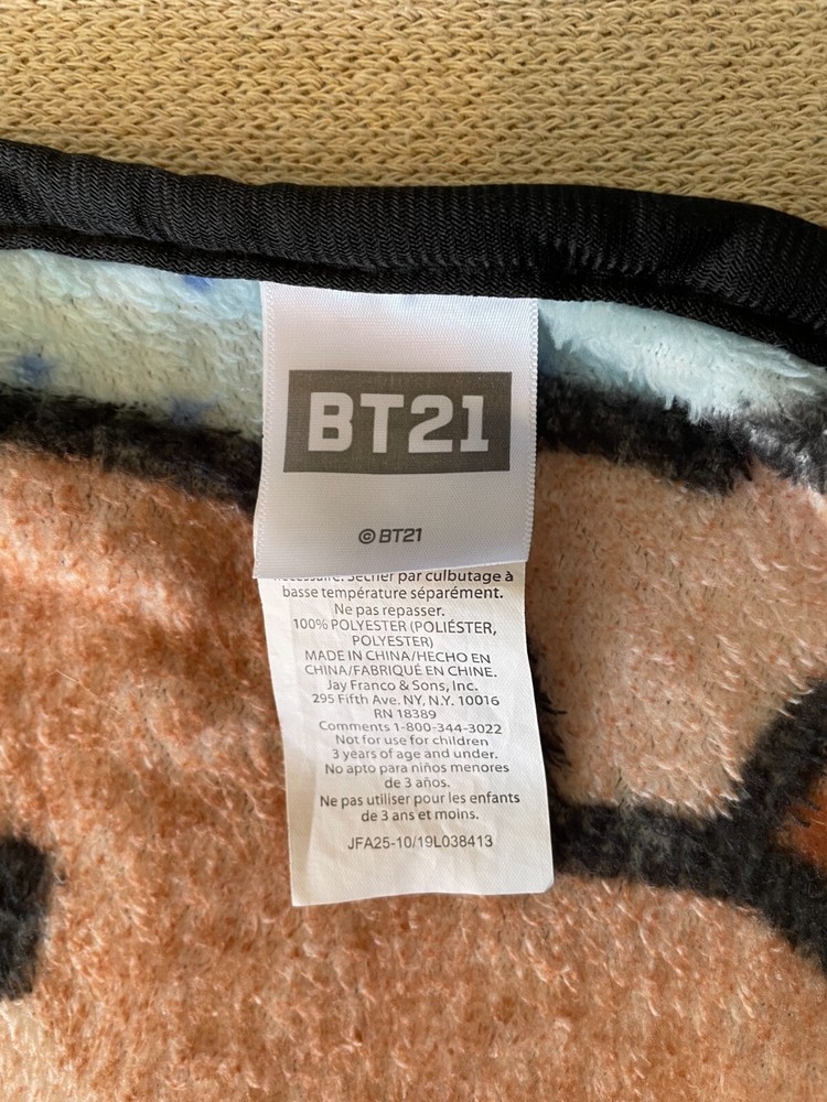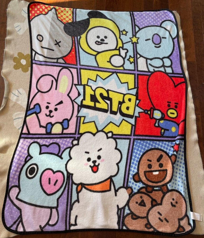 SOLD OUT BT21 Character Panel Throw Blanket Very soft, like new. No holes or stains. DOES NOT INCLUDE BROWN BLANKET IT IS LAID ON. BROWN BLANKET WAS MERELY TO SEPARATE IT FROM THE FLOOR.