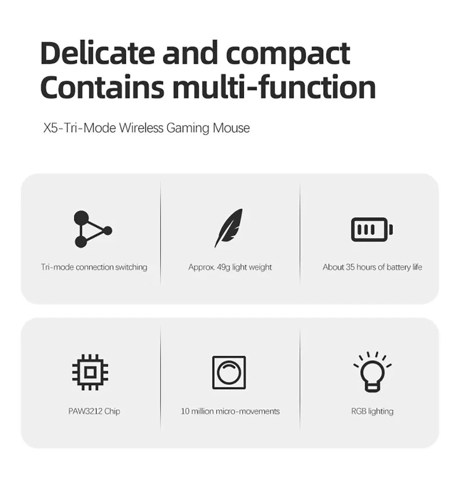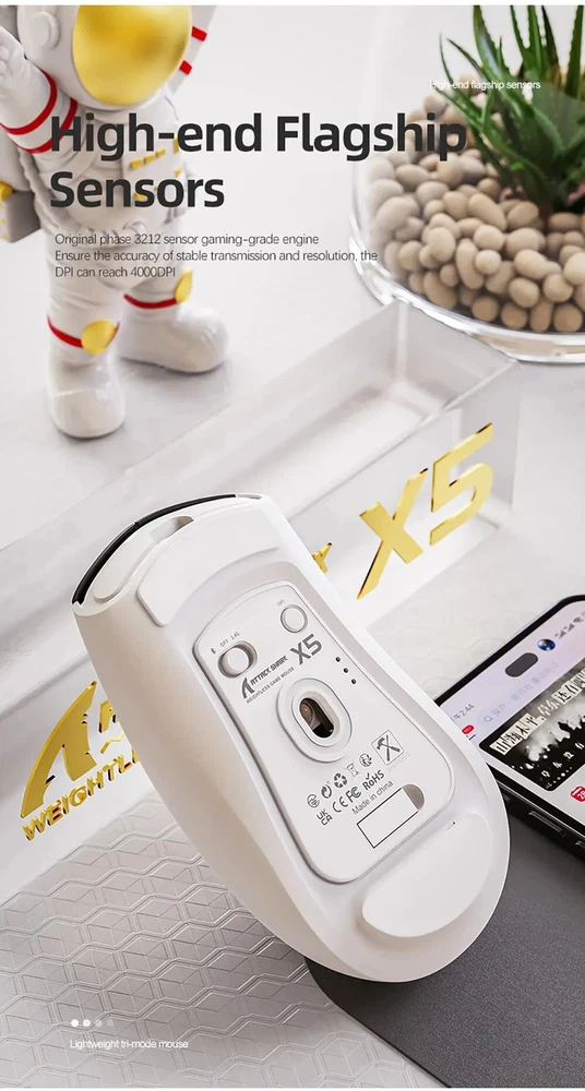 • 3 Modes for Versatile Use : The mouse comes with 3 different modes, BT/2.4Ghz/USB-C, allowing you to use it wirelessly or with a cable. • RGB Lighting for Enhanced Gaming Experience : The mouse features RGB lighting that adds a touch of style to your gaming setup and enhances your gaming experience. • Rechargeable Battery for Convenience : The mouse has a rechargeable battery, eliminating the need for frequent battery replacements and ensuring convenience. • Optical Sensor for Accurate Tracking : The mouse uses an optical sensor, providing accurate tracking of movements and ensuring precise control over your gaming or work activities. 【3 Mode Bluetooth Wireless Mouse】This gaming mouse wireless adopts advanced 2.4G wireless and Bluetooth 5.1 transmission technology and USB-C transmission. Computer mouse adopts Pixart 3212 Optical Sensor which Transmission frequency up to 2480MHz and refresh rate up to 4000FPS.compatible with your PC/Laptop/Macbook/Mobile Phones. 【Lightweight 49±3g RGB Honeycomb Design】The wired mouse is made of high quality Lightweight ABS material and designed with ergonomic shape, reduce the weight and make the mouse more flexible and easier to be used for a long time without fatigue. 【Breathing RGB Rainbow Backlight】The ATTACK SHARK mouse wireless has beautiful led rainbow backlit which is honeycomb shape on the right keys and left keys.You never expect the backlight of a mouse to be set up like this, it's incredible. You will definitely be attracted by this design. 【5 DPI Adjustable & Battery Rechargeable】This rechargeable gaming mouse can be adjusted within 5 levels dpi (4000-2400-1600-1200-800) by pressing the DPI button;Built-in 300Mah lithium battery,with USB-C charging cable, Low battery indicator will remind you to charge it with flashing red light.it also supported recharged while charging, not afraid of power off in gaming. 【Wide Compability Gaming Mouse】This Black gaming mouse is equipped with high quality switch,can be clicked up to 4 million times, can be used for PC, Mac Notebook, Laptop,Tablet, desktop, Computer, Cell Phone and other device, and support Windows 7/8/10/XP//VISTA/MAC OS/Android/ios, etc, The USB interface is plug and play Notice: 1. Please charge the product before first use 2. Please do not disassemble the product without permission 3. Do not use fast charging charger to charge the product