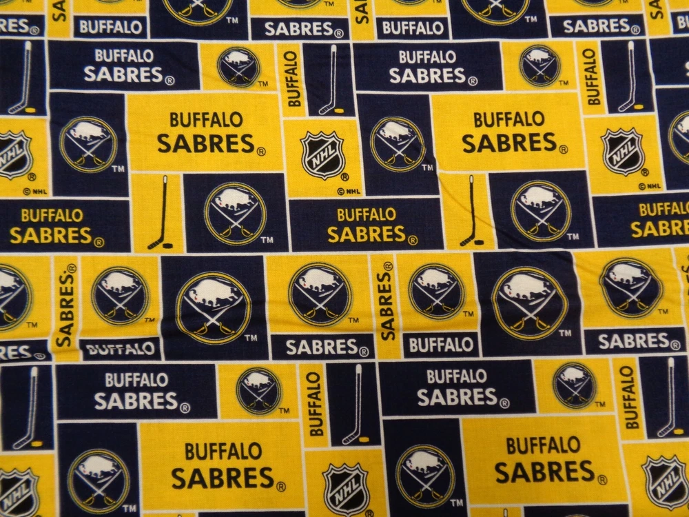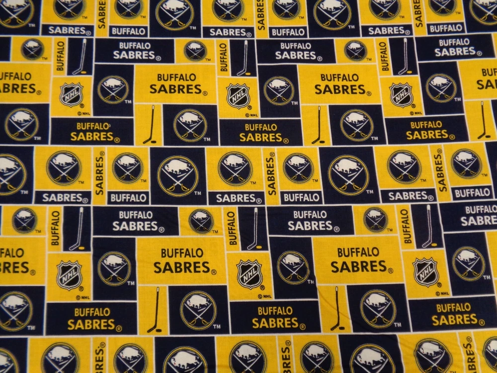 Up for sale is a half yard (18" x 44") of BUFFALO SABERS NHL FABRIC. It is 100% Cotton Fabric, and the new square design. We cut to order Thank you for your time