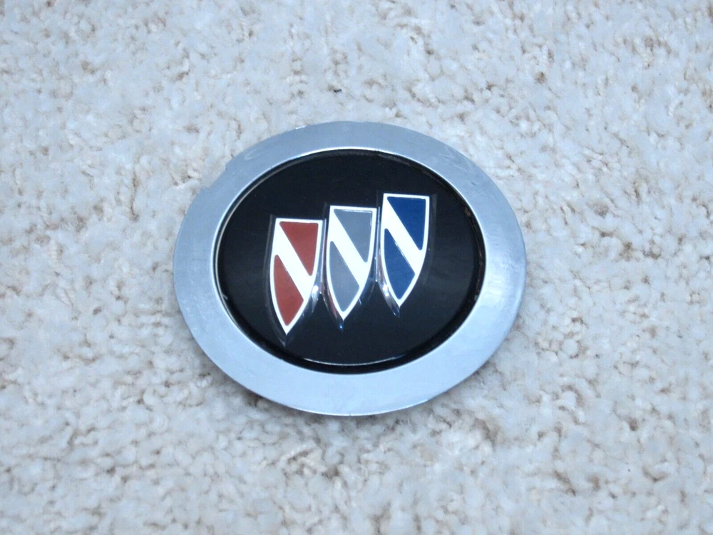 This is a GM Buick hubcap center cap with OEM part number 22532104, suitable for models like Century, Electra, Lesabre, and Skyhawk. It is a multicolor cap featuring the Buick emblem, designed for easy installation without tools. The lightweight cap is car wash safe and can be placed on the rear, left, front, or right side of the vehicle.