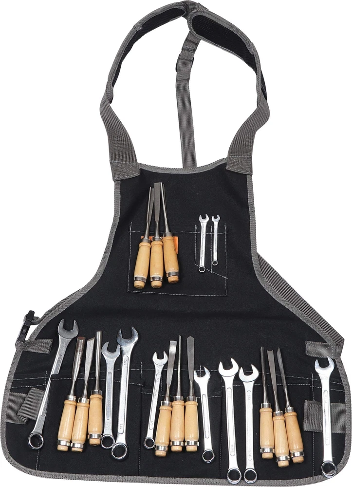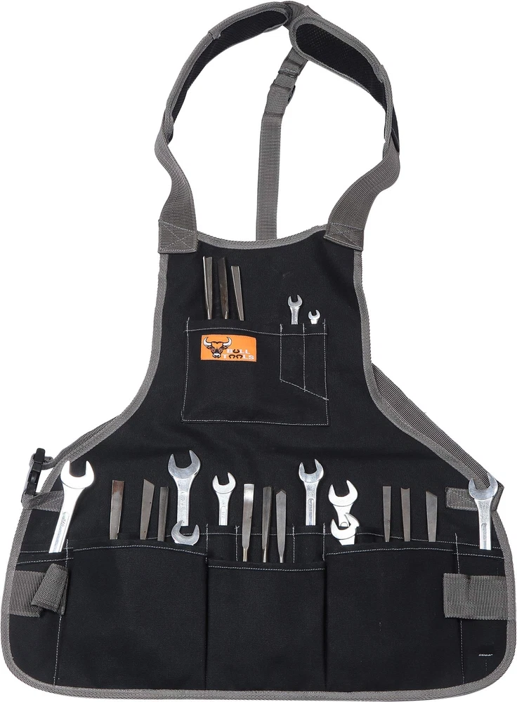 BULL TOOLS Bt 19-1103 Heavy Weight 15 Oz. Dyed Duck Cotton Canvas 16 Pocket Utility Smart Tool Waist Apron - Coal Black - (Tools are not included) Be prepared for all of your jobs with the Sixteen pockets and two hammer loops on this Super Waist Apron. Made of heavy-duty Duck wear canvas, the Super Waist Apron is designed to last under everyday use. This handy shop accessory will become a must-wear while you work. The larger pockets fit tape measures, nails, screws, and more while smaller pockets are ideal for rules, pencils, screwdrivers and other hand tools. Features a quick-release belt closure lets you transition from shop to home in seconds. The one size fits most design accommodates waist sizes up to 52". Made with heavy-duty Duckwear canvas, the SuperWaist Apron features 16 assorted tool and fastener pockets. It is designed with 2 web hammer loops on each side This apron is ideal for professional carpenters and DIY projects alike. Can fit up to a 52-inch waist. The waist strap is fully adjustable with a quick-release buckle. Shipping from the USA All of our products are shipped from the USA, ensuring quick delivery to your destination. Payment We offer the following payment methods: PayPal, credit card, bank transfer, and eBay's secure payment system. Free Shipping & Free Returns Shipping within the USA is FREE. Additionally, any return is absolutely free for you. Risk-Free Purchase You have the option to return an item within 30 days without any justification. We cover the return shipping costs! Fast Shipping We ship immediately upon receipt of payment. Generally, the package is delivered within 2-3 days in the USA. If it takes longer, we will contact you. Quality and Costs Made in Europe, USA, China No customs fees or additional charges Total satisfaction guarantee Invoice with declared VAT available upon request in .pdf format Feedback Your feedback is very important to us. After you pay for your purchase, you will automatically receive positive feedback from us.