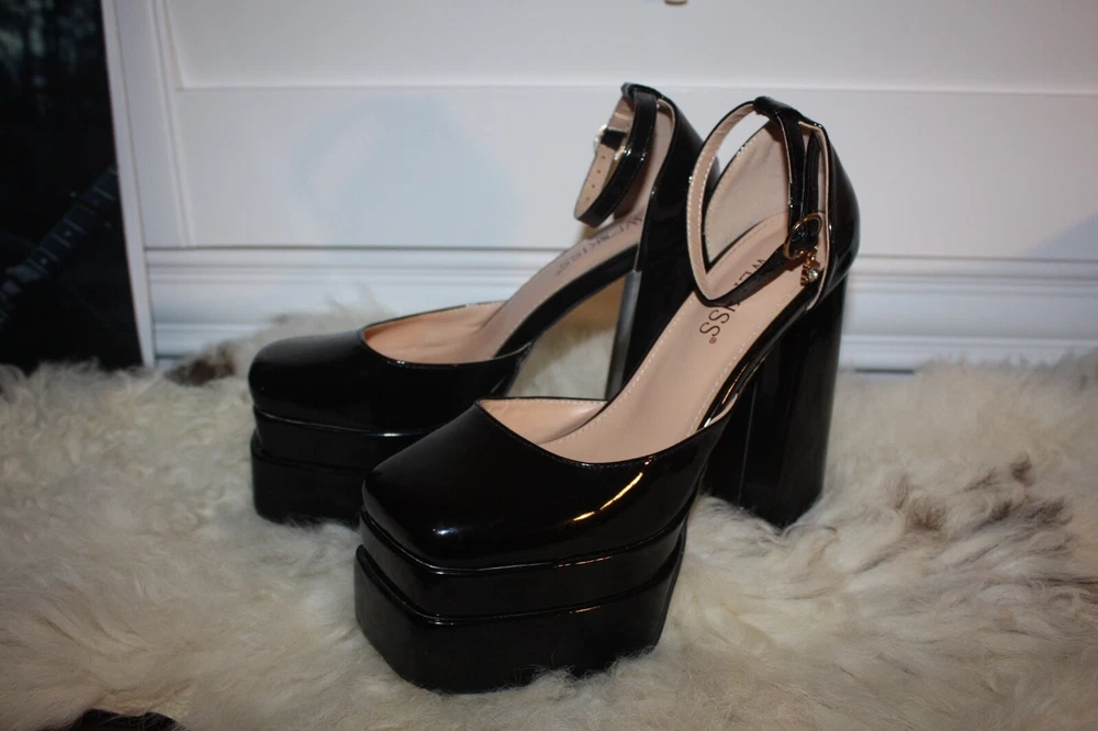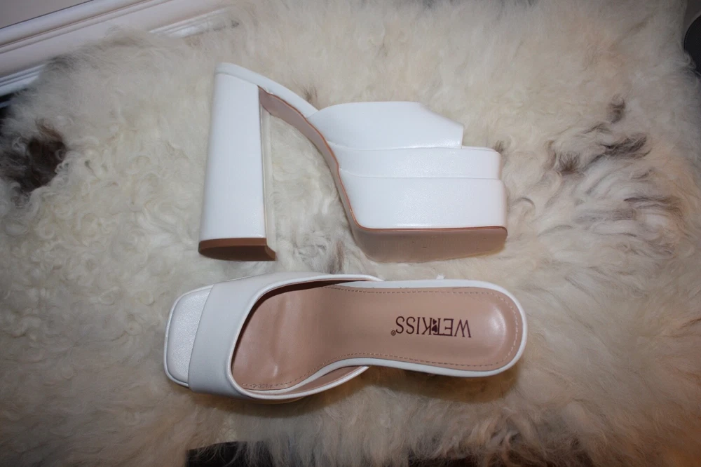 BUNDLE - 4 Pairs of Platform Heels Fits Size 8.5W (White, Pink, and 2 Black) Black Vinyl: WetKiss in size 8.5 White: WetKiss in size 8.5 Pink: No Brand in size 8.5 Matte Black: Dsevht in size 9 (fits like 8.5) ALL BARELY WORN - not in original box