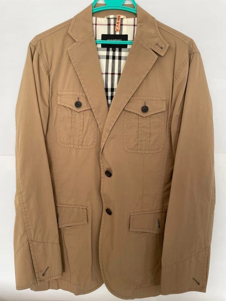 Handmade: No Type: Jacket Size Type: Regular Lining Material: NA Performance/Activity: Walking Theme: NA Chest Size: NA Size: L Garment Care: NA Style: NA Jacket/Coat Length: NA Pattern: Check Closure: Button Color: Beige Collar Style: NA Fabric Type: NA Department: Men Insulation Material: NA Features: Collared, Pockets Product Line: NA MPN: NA Vintage: No Fit: Slim Occasion: Business, Casual, Travel gtin13: Does not apply Brand: Burberry Model: NA Warmth Weight: NA UPC: Does not apply Country/Region of Manufacture: China Accents: Button Season: Fall, Spring, Winter Personalize: No Outer Shell Material: Cotton