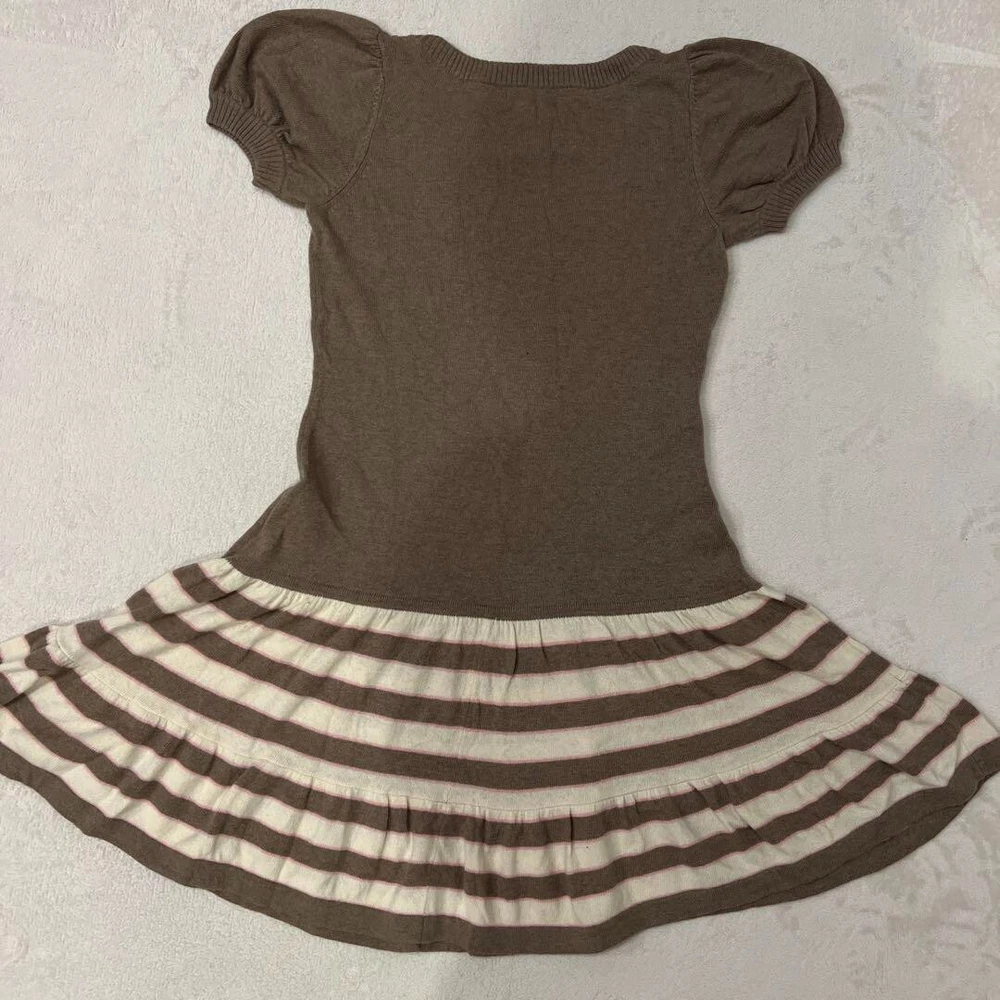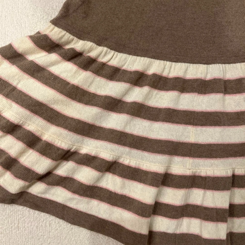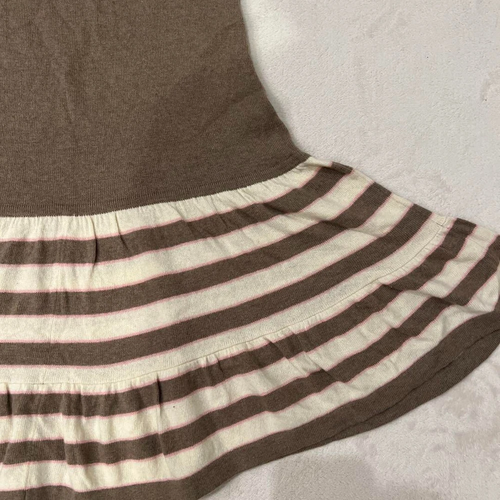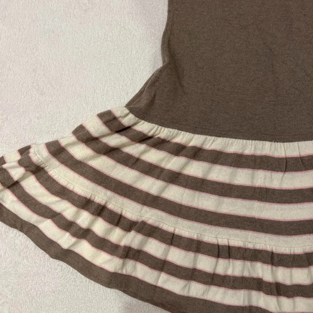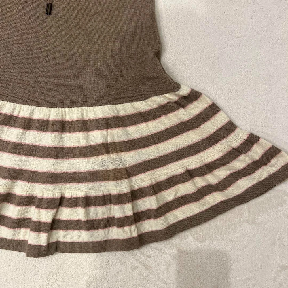 BURBERRY Knit Dress Short Sleeve Flare Skirt Border Brown Women Size 38 Used