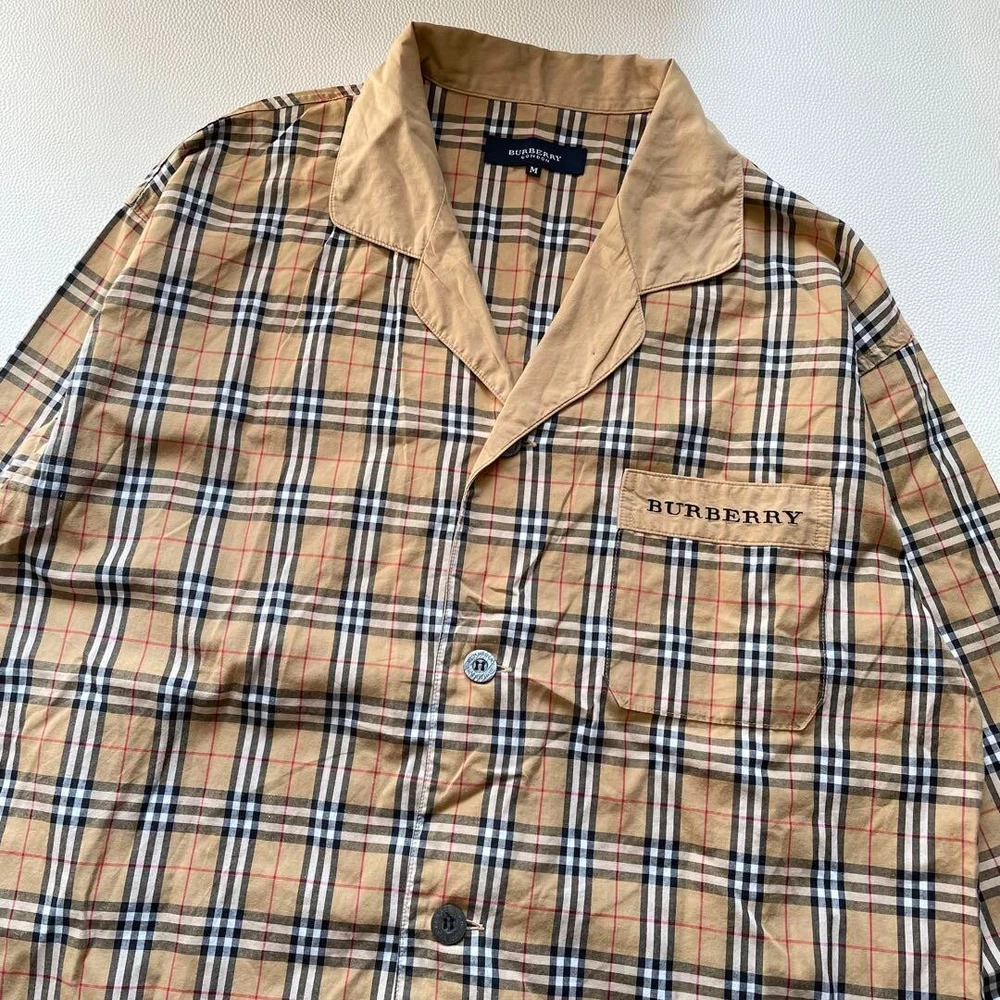 BURBERRY LONDON Nova Check Pajama Shirt Open Collar Shirt Beige Men Size M Used