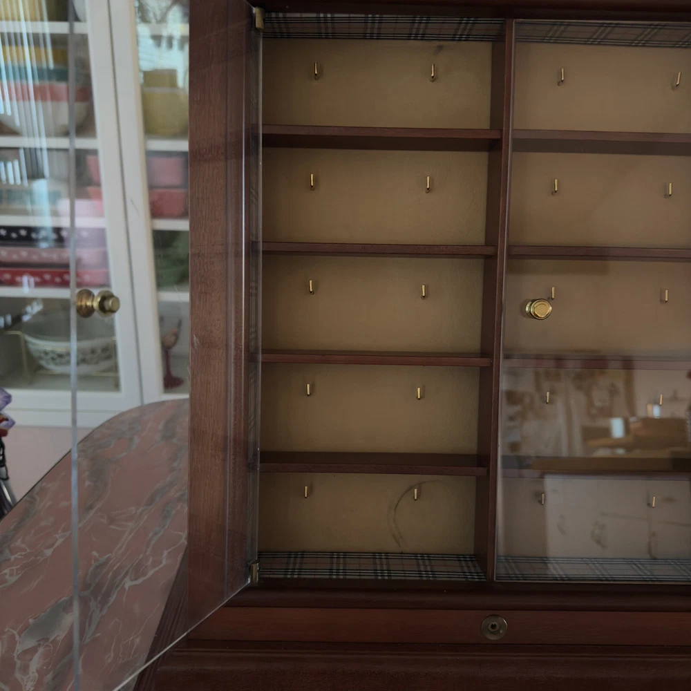 VERY COOL VINTAGE BURBERRY DISPLAY CASE (Nova Check Lining) MADE OF WOOD WITH ACRYLIC DOORS DIMENSIONS CAN BE FOUND IN THE PHOTOS I THINK IT IS MISSING A LOCKING MECHANISM BUT I CAN'T FIND A COMPARISON TO BE SURE WORKS AND DISPLAYS GREAT MADE TO HOLD EYEGLASSES BUT COULD FIT SMALLER SUNGLASSES SOME WEAR FROM AGE AND USE. SOME STAINS ON LINING SOME SCRATCHING TO THE ACRYLIC DOORS (VERY HARD TO PHOTOGRAPH) SCRATCHING AND KNICKS TO THE WOOD VERY DUSTY FOR EXACT SIZE - PHOTOS WITH A RULER ARE AT THE END OF THE ALBUM ABOVE THERE IS WEAR CONSISTENT WITH AGE SURFACE WEAR AND TONE LOSS NEEDS A GOOD CLEANING (LOST OF DUST AND GRIME BUILD UP) ORIGIN, AGE, MATERIALS USED, ETC ARE ALL EDUCATED GUESSES ON MY PART. THEY HAVE NOT BEEN TESTED PLEASE EXAMINE THE PHOTOS AND RESEARCH FOR YOURSELF BEFORE BIDDING/PURCHASING PLEASE INSPECT THE PHOTOS BEFORE PURCHASING . The photos provide the most accurate depiction of the condition. The piece in the photos is the piece you will receive . IF YOU NEED ADDITIONAL INFORMATION, OR PHOTOGRAPHS I AM HAPPY TO PROVIDE THEM UPON REQUEST. TERMS OF SALE JEWELRY HAS NOT BEEN CLEANED! My Jewelry is used and many times very dusty/dirty. I do not clean or sanitize the items before selling (in order to avoid damaging the pieces.) Please be advised your item will likely need a deep cleaning. YOU ARE PURCHASING A USED ITEM PET FRIENDLY HOME If you have allergies to dogs and cats or dog/cat hair. Please do NOT purchase . PLEASE VIEW ALL PHOTOS Condition of used items will vary. EXPECT NORMAL WEAR AND TEAR AT A MINIMUM "Normal Wear" of vintage, and used items may consist of: MISSING PIECES, MISSING PACKAGING, SURFACE SCRATCHING, LOOSE AND/OR MISSING STONES, TARNISHING, VERDIGRIS, GLUE RESIDUE, COLOR LOSS, STAINING, ODOR, MARKS, WEAR, WRITING, SCRIBBLES, SCRAPES, SCUFFS, SCRATCHES, SURFACE WEAR, PAINT OR TONE LOSS, CHIPPING, CRAZING, LUSTER LOSS, TEARING, WARPING, RIPS, HOLES, DUST, SMUDGES, PEELING, CREASING, DENTING, ETC. ETC. NOTE: I am a full-time reseller and collector. My items are purchased through estate sales & second hand stores. I cannot guarantee items are from a "smoke free" home. If you have an allergy to smoke, please do not purchase. There are NO REFUNDS , or returns on any of my items. Unless there was a mistake or misrepresentation on my part. I do my best to provide clear photos and detailed descriptions. If you have any questions about the item, I will gladly provide any other information or photos I have BEFORE PURCHASING. DISCLAIMER: I've tried my best to identify, and describe the products in my shop truthfully. I value each piece using internet research, guide books, and the knowledge I've obtained over the years. Please do not purchase based on my opinions alone. View the photos and use your own resources to determine if an item is what you're looking for. I am not a certified appraiser or expert nor do I do I wish to present myself as one. THANK YOU SO MUCH FOR LOOKING check back often for new items