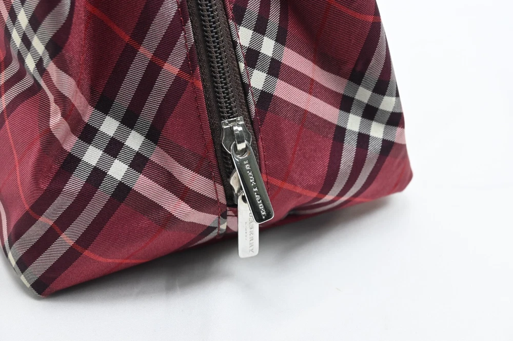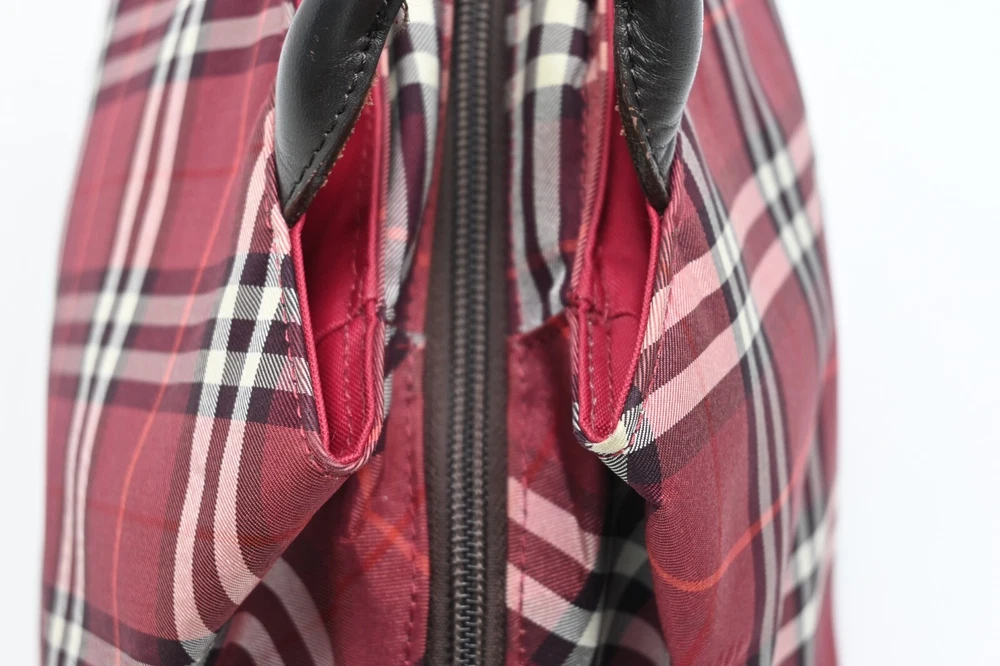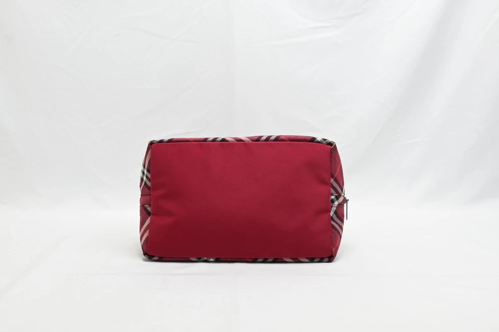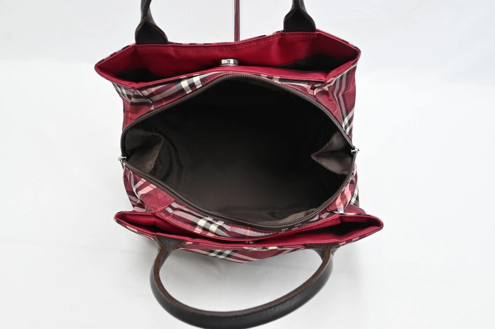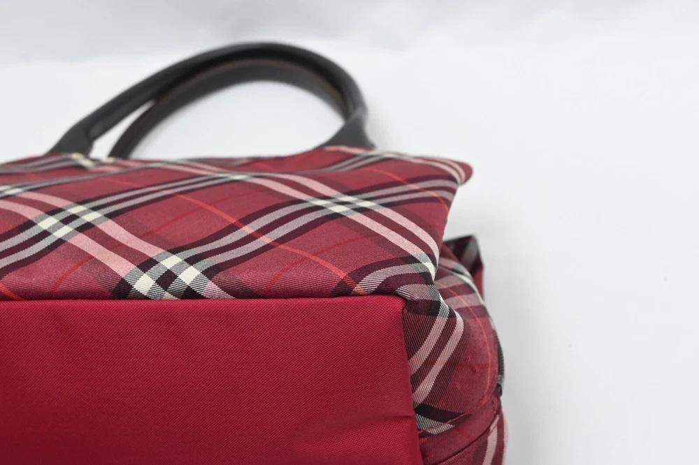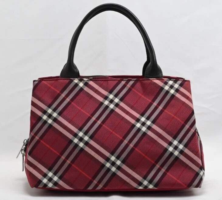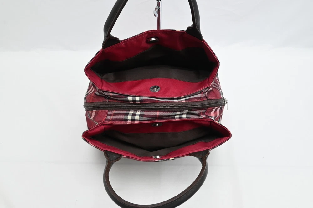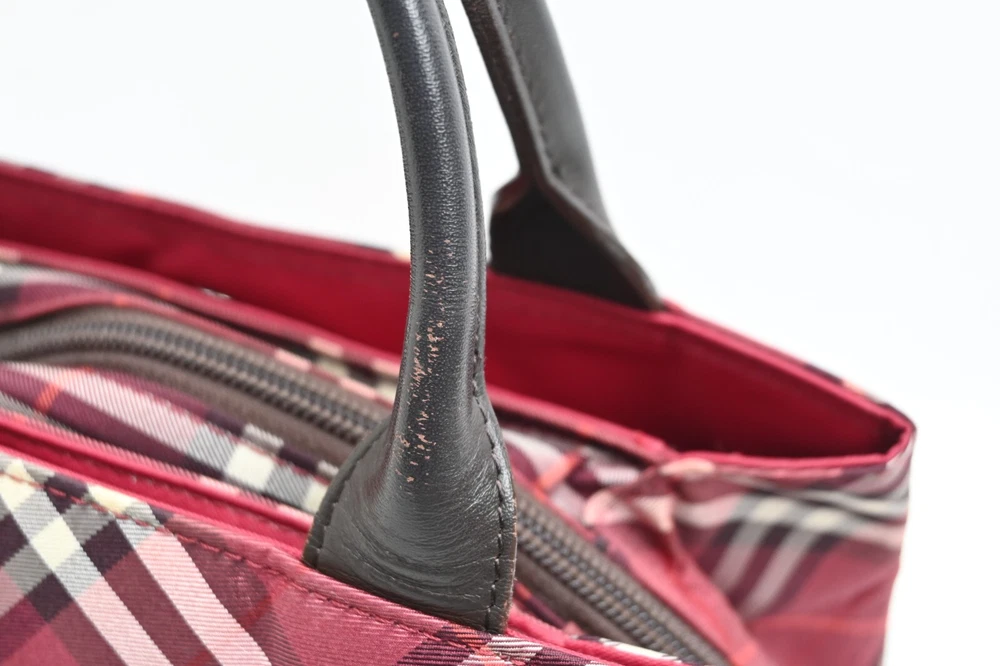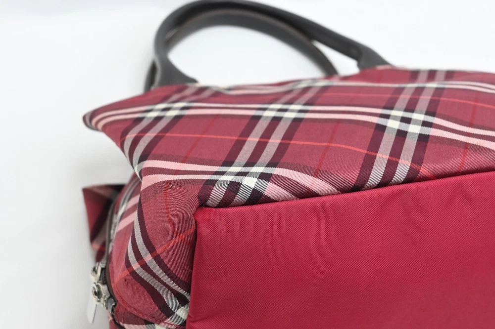 BURBERRY Nova Check Blue Label Hand Bag Nylon Red Authentic