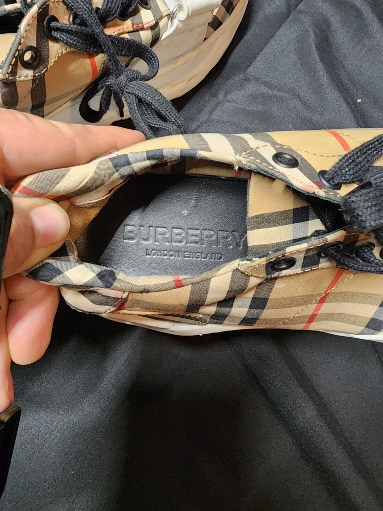 Type: Casual Insole Material: Leather UK Shoe Size: 10.5 Outsole Material: Rubber US Shoe Size: 12 Color: Beige Lining Material: Leather Style: Sneaker Upper Material: Cotton Vintage: No Department: Men Brand: Burberry London Pattern: Check EU Shoe Size: 44
