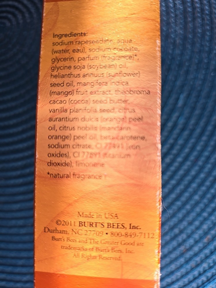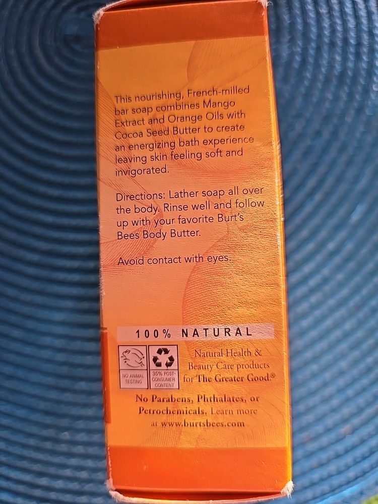 BURTS BEES MANGO & ORANGE ENERGIZING BODY BAR 5 Oz.