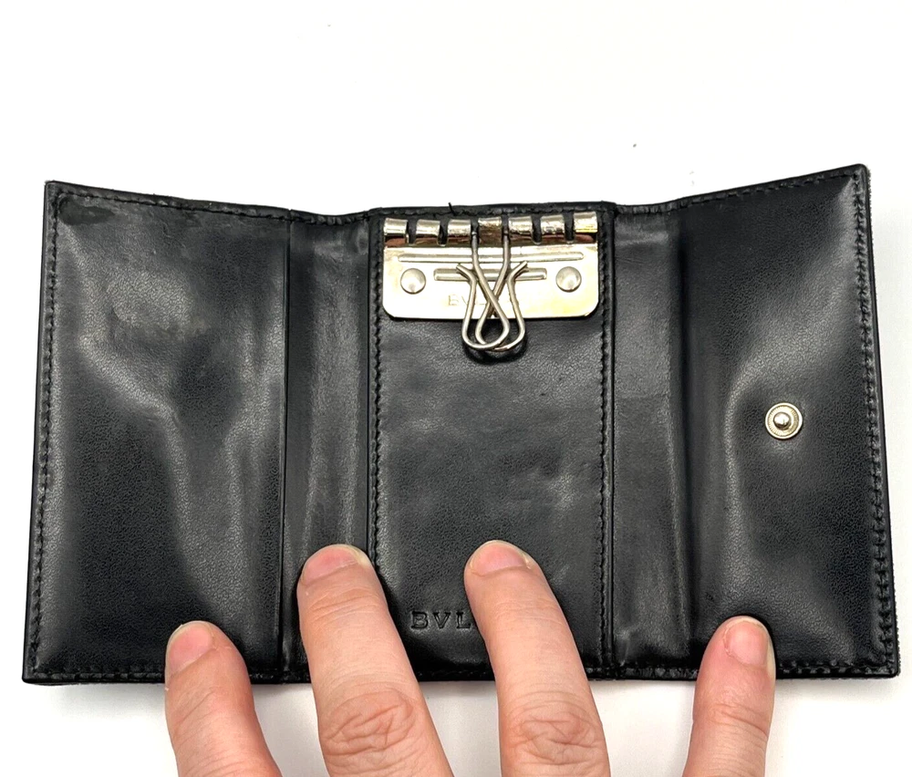 BVLGARI Key Holder Denim Logo Black Interior w One Pocket Two Key Hooks Designer Measurements : 4" x 2.5" - See reference photos Condition: The key holder is a denim canvas on the outside and black leather on the inside. There is one inside pocket that is a good size for a drivers license or credit card. There are two hooks inside. The snap is working great. When you pull the flap up you can see the color of the original denim and it highlights how faded the exterior denim is. The edges are especially faded and show obvious signs of usage. The corners are not broken or torn, but are worn. Inside the leather has some creases also showing heavy usage. You can get replacement hooks if needed. The interior gold hardware has color loss. Please review all photos. Please follow my store on eBay to receive coupons and sale information. I sell mostly vintage and designer women’s bags, clothes & accessories. Payment Payment will be handled through eBay. Most items will allow you to pay after committing to the sale. This gives us the ability to send an invoice for orders with multiple items with the shipping amount adjusted before payment. Please allow up to 24 hours to receive your invoice. If payment is not received within 3 days your order may be in jeopardy of being cancelled. Shipping We only ship to your eBay confirmed address. We cannot change the address after the sale is made. No exceptions. If this happens to you, you must cancel the order, fix your shipping address and purchase the item again. I will ship within 1 business day of cleared payment received. Combined Shipping is available when purchasing multiple items. The shipping will be recalculated based on the new weight and box size, and an invoice for the items with the adjusted shipping will be sent to you for payment within 24 hours. If you pay for multiple items in advance, just send us a message and we will do the calculations and refund you the difference in the combined shipping. International Buyers - Please Note: All of my international shipping is handled through eBay international shipping program. If you have questions about this, please contact eBay. Likewise, international returns are handled completely and solely through the eBay program, so questions will go directly to them. Terms of Sale All are items are guaranteed as described or your money back! We offer a 30-day return policy. About Us Stone Blue Creative jewelry & collectibles business is 3 years old. We carry designer, vintage, and estate jewelry along with other fine women’s accessories and art. We work hard to provide accurate representations of all of our jewelry and guarantee each item. We sell in all price ranges from $5 to around $3,000. All of our pieces are second hand unless marked New. Contact Us We can be reached through eBay messaging. Please allow up to 24 hours for a response, although response times are usually much faster.
