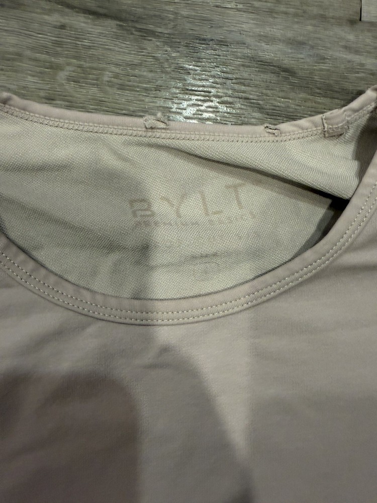 Refresh your essentials with this BYLT Basics Drop-Cut LUX Tee in a soft light pink / blush colorway. Designed with a modern silhouette and premium materials, this tee delivers a clean, elevated look that works effortlessly for everyday wear, casual outings, or layering. Constructed from BYLT’s signature LUX fabric, this shirt features a structured drape, 4-way stretch, and a drop-cut elongated hem for a flattering, contemporary fit. The tapered profile offers a sleek appearance while remaining comfortable and flexible throughout the day. Condition • Pre-owned • Light to moderate wear consistent with regular use • Faint discoloration and small spot visible on front. Some holes on collar that do not impact structural integrity and are not very visible worn. (see close-up photos) • Interior collar branding faded from washing • No major structural flaws • Still fully wearable and functional Please review all photos carefully for exact condition and details. Features • Size: Men’s Large • Color: Light Pink / Blush / Pale Rose • Crew neck • Drop-cut elongated hem • Tapered modern fit • Tight-knit premium LUX fabric • Soft yet structured feel • Wrinkle-resistant • 4-way stretch for comfort and mobility Fabric & Care • 70% Cotton / 25% Polyester / 5% Spandex • Machine wash cold • Hang dry recommended to preserve fit and color This tee pairs easily with jeans, chinos, joggers, or layered under hoodies and jackets. A versatile premium basic with a clean, minimalist aesthetic. ⸻ BYLT Basics, Drop Cut Tee, LUX Tee, Mens Large Shirt, Light Pink T Shirt, Blush Tee, Premium Basics, Minimalist Shirt, Streetwear Tee, Elongated Hem Shirt, Crew Neck Tee, Modern Fit T Shirt, Stretch Cotton Tee