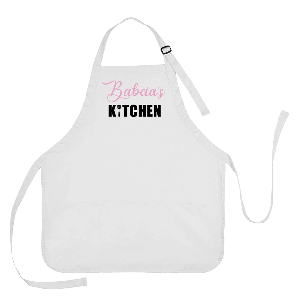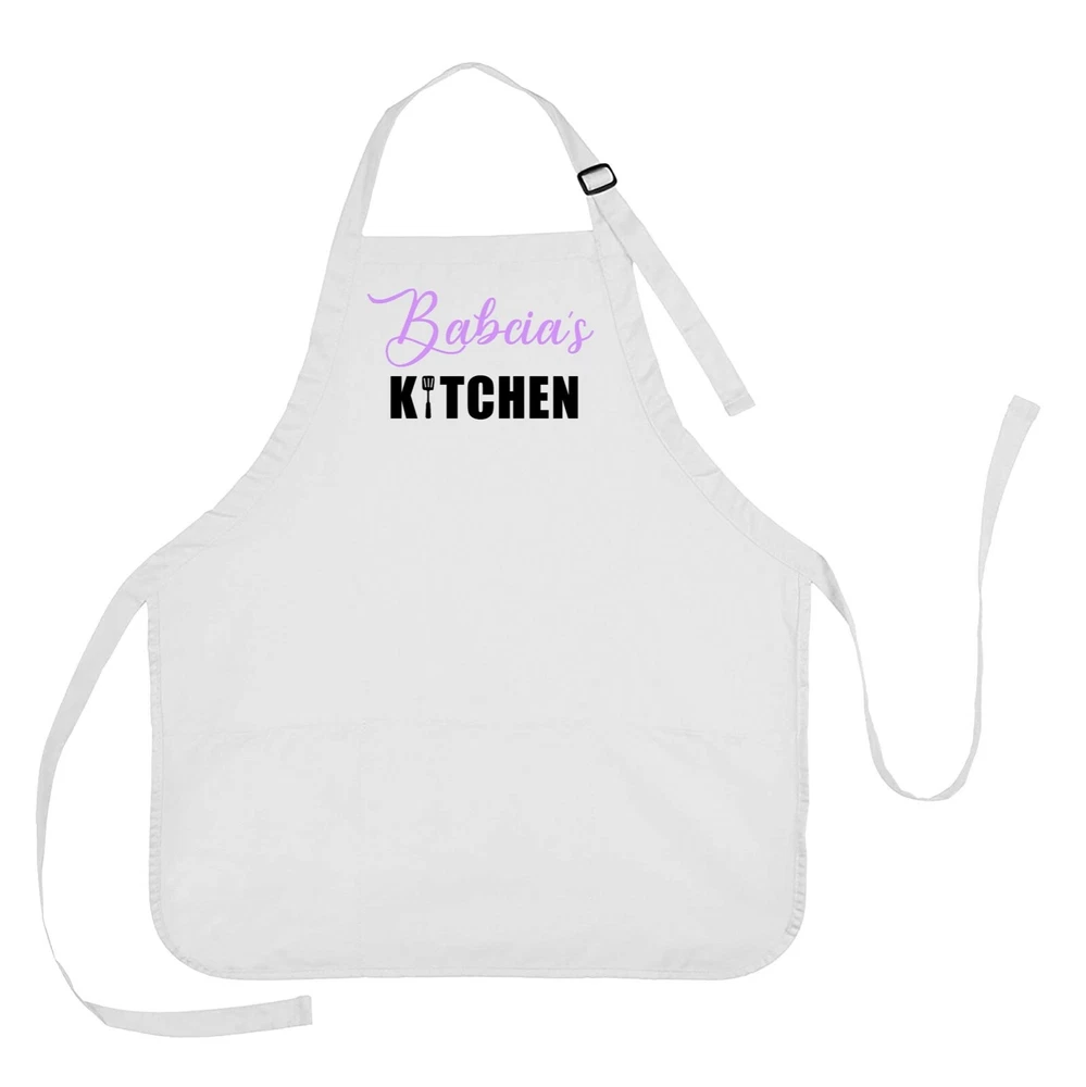 Looking for a great gift for those Babcia's that love to cook.... look no further! Shop Personalized Gifts has created an apron that says " Babcia 's Kitchen" using heat pressed vinyl. You can choose from either a white or black apron from the drop down menu provided. We offer a 22"x 24" apron with 3 front pouches, a 22" x 30" apron with 2 front pouches, and a 2-XL size which is 26.5" x 35.5" with 2 front pouches. The apron is made from a poly blend cotton and has an adjustable neck buckle. Care These aprons are machine washable. Machine wash with cold water on a gentle cycle with mild detergent. Tumble dry low. Shipping We ship via USPS. We offer first class shipping (2-5 business days) and priority mail (1-3 business days).