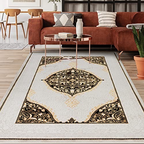 Menu 1. We require immediate payment. 2. We currently accept payment via eBay managed payments only. 3. Once payment is cleared, we will dispatch your shipment within 1-3 business days. Please refer to the "Shipping" tab for more information regarding shipping speed to your destination. Babil Gold 5x7 Oriental Bordered High Low Textured Traditional Indoor Area Rug, Beige Black, 5'3" x 7' Product description Perfect for Dining Room, Living Room, Bedroom. Spot clean with mild soap. Vacuum Regularly. DURABLE COMFORT: Machine-made from stain-resistant and stylish 100% Polypropylene, this durable area rug is designed for comfort and style. With a pile height of 0.39", this floor rug offers cushioned comfort without being too bulky. LOW-MAINTENANCE FLOOR RUG: Strong Polypropylene materials will stand up to regular wear and tear for years of stylish comfort. This durable indoor area rug can be easily maintained with regular vacuuming and spot cleaning as needed. VERSATILE GOOD LOOKS: Add a fashionable complement to a living room, dining room or bedroom with this versatile indoor area rug. With its classic color scheme and practical size, this area rug makes an attractive addition to any décor. DEDICATED TO QUALITY: manufactures and imports high-quality area rugs from Turkey. A growing name in the home-fashion world, produces an impressive range of colorful floor rugs designed to complement any room like a work of art. PLEASE MESSAGE US IF YOU HAVE ANY OTHER QUESTIONS, AND MANY THANKS FOR READING ALL OF THIS. Copyright ©#. All Rights Reserved.