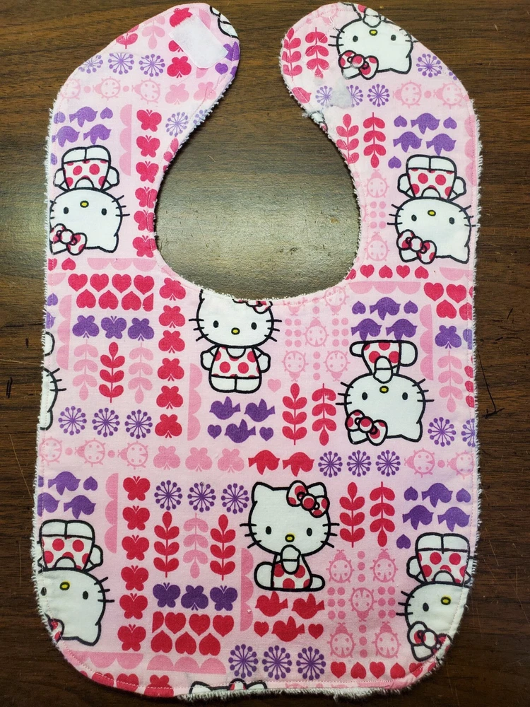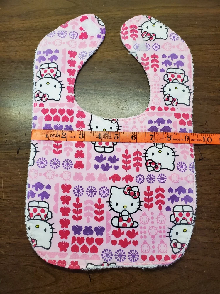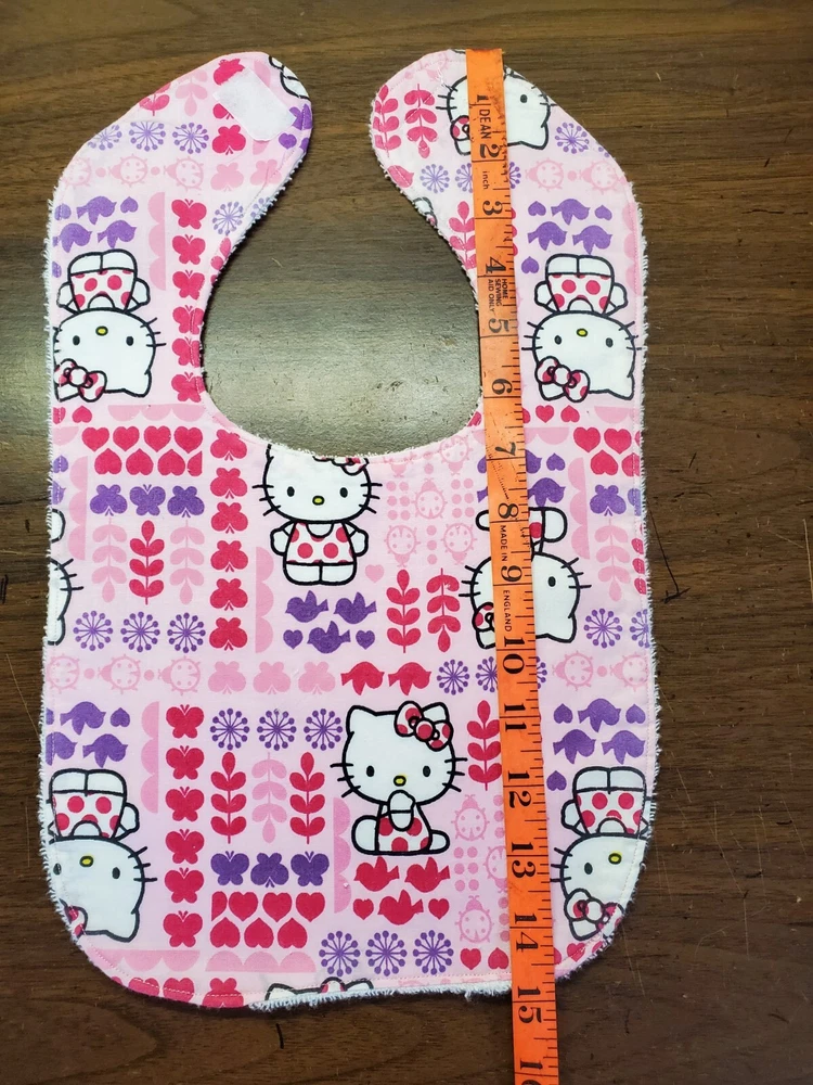 Bibs measure 9 by 14. They are backed with white 'Baby Terry' cloth which is alot softer then regular terry and very absorbent. All have velcro closures Makes great baby shower gifts. I have several different prints in my store plus many other items that I make. I have only made the number listed. Please come visit. Print placement will vary. All returns must be in new and unused condition. Thank you