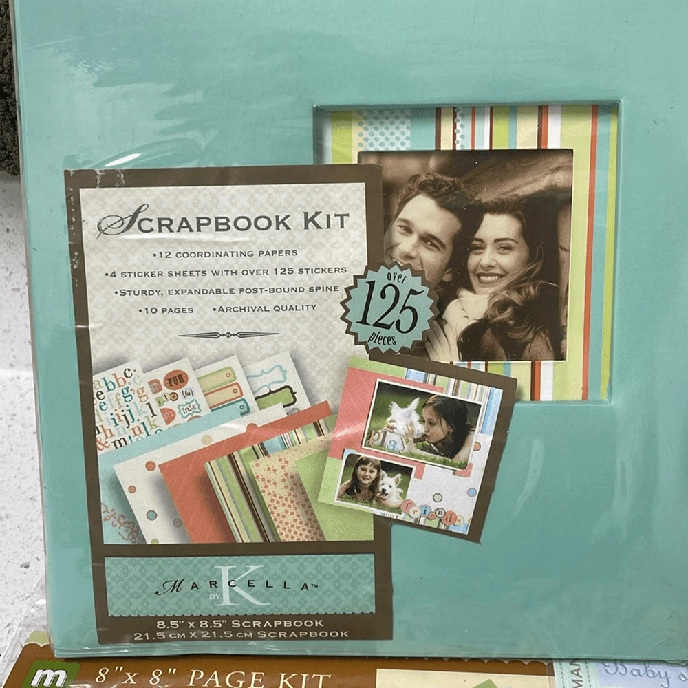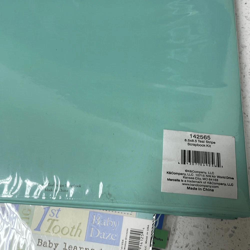 Scrapbook kit/book and supplies for new baby boy! 6 sheets of stickers 8x8 page kit Brand new Blue/green