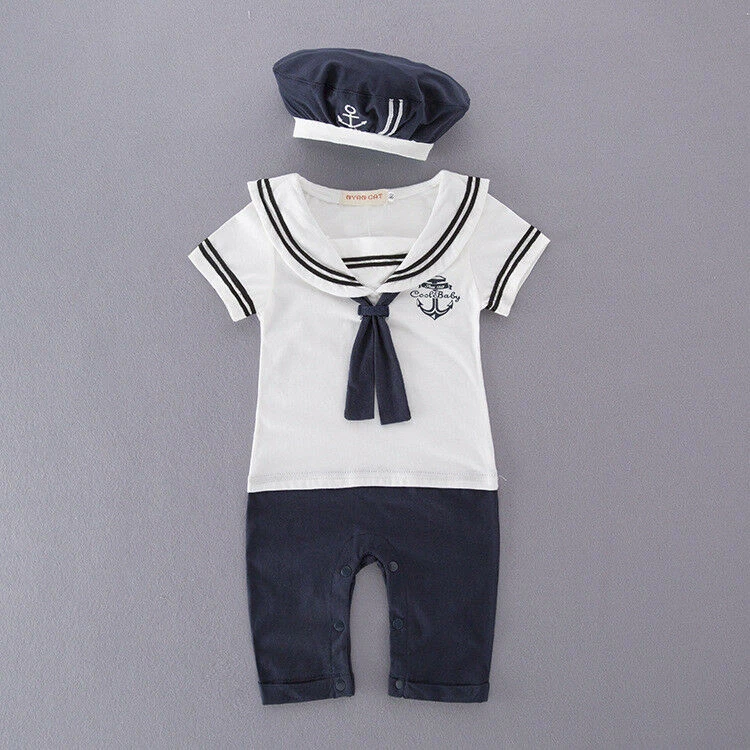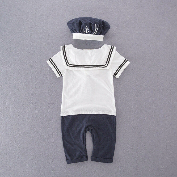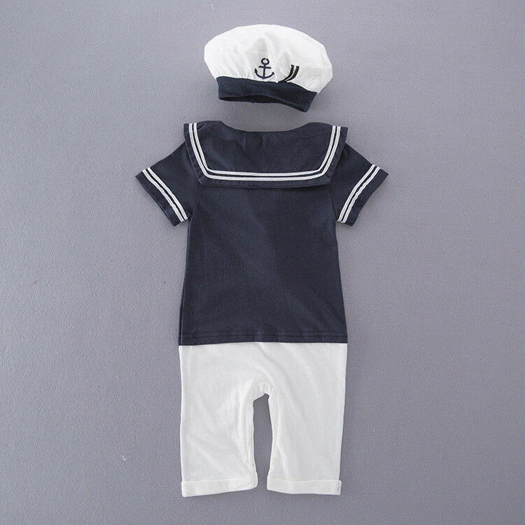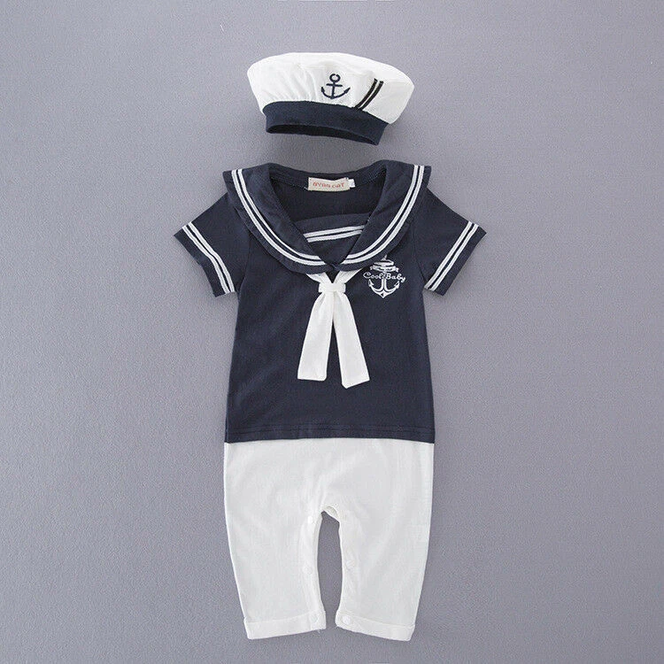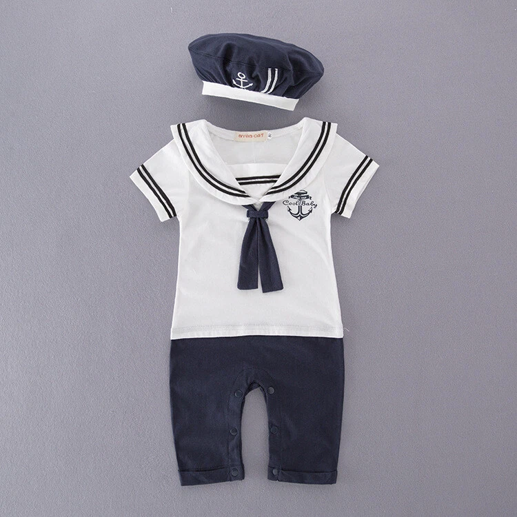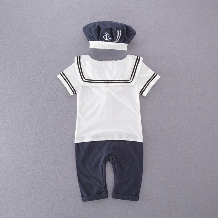 Baby Boys Girls Sailor Costume Suit Outfit Dress Romper Clothes + HAT Set 3-18M Package includes:1 Romper+Hat 100% brand new & Top quality Materiel: Cotton color: as picture show Features: soft cotton Material! High quality.very cool.It is suitable for baby boy to wear in summer. Please check the size measurement chart carefully before making payment. If your measurement is floating between two sizes, advise choosing the larger size. If your kid is chubby, we recommend choosing a larger size, thanks. Size Chart:1inch=2.54cm Size Chart(CM/INCH)---1inch=2.54cm Tag No. Chest Shoulder to Crotch Length Suggest For Age 80 26x2cm 39cm 56cm 0-6 Months 90 29x2cm 40cm 57.5cm 6-12 Months 95 30x2cm 41cm 59cm 12-18 Months SIZE ERROR: 1-2CM error as size was measured by hand. Hint for choosing proper size: Use similar things to compare with the size. Please check the size measurement chart carefully before making payment. (Measurements shown in the size chart refer to item measurements, not body.) Note:please allow 1-2cm difference due to manual measurement. The size is just recommended for you, please kindly check the measurement! it is important to measure your child in order to select the appropriate size,thanks!