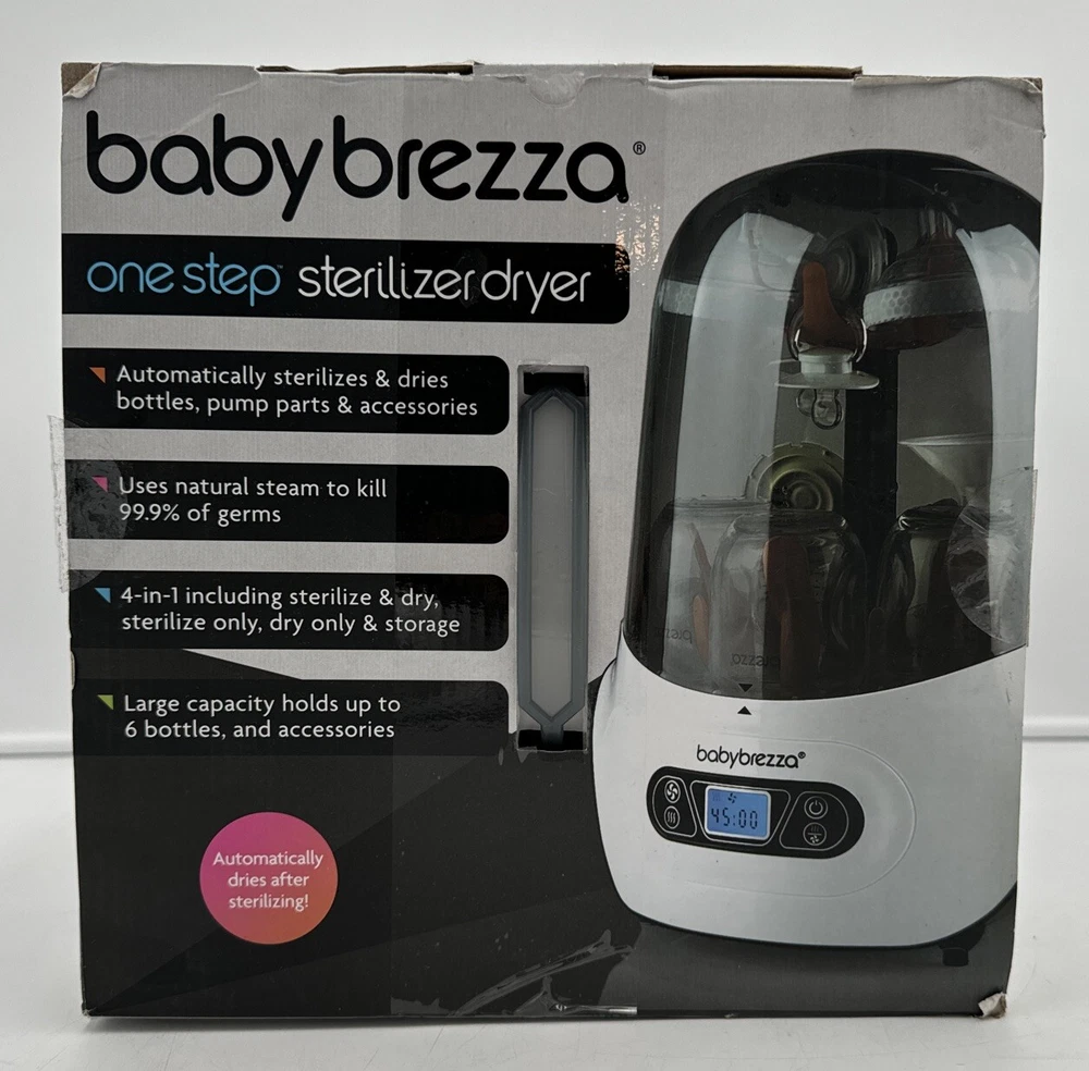 BRAND NEW IN BOX!! Introducing the Baby Breeza One Step Sterilizer Dryer, a must-have for parents who want to ensure their baby's feeding time is safe and hassle-free. This electric sterilizer comes in a sleek white color and includes a removable tray, tongs, and a handle for easy use. With its dishwasher-safe parts, this sterilizer is perfect for busy parents who want to save time. The Baby Breeza One Step Sterilizer Dryer is ideal for use during bottle feeding and is designed to make sterilization simple and effortless. Get yours today and enjoy peace of mind while feeding your baby.