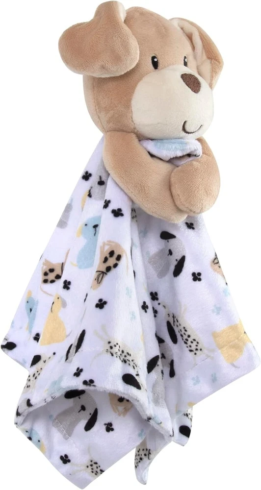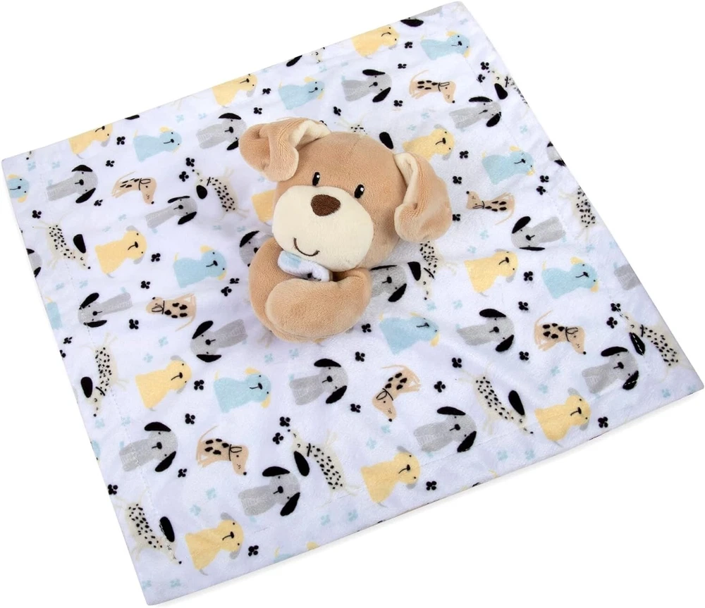 Wrap your little one in comfort with this adorable lovey. Made of super soft minky material, it features a cute dog print and a plush puppy. The sweet embroidery detail and sculpting add a charming touch to this security blanket that measures approximately 13" x 13". And the best part? It's machine washable, making it easy to keep clean and ready for snuggles. Give your baby the gift of cozy comfort with this must-have lovey. Paypal Payments Accepted. All purchases are mailed out within 2 business days of receipt of payment.