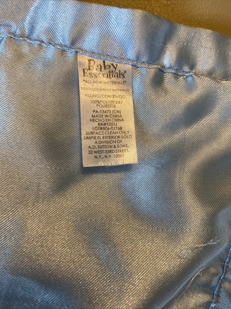 Theme:Dogs & PuppiesMaterial:PolyesterType:Security BlanketBrand:Baby EssentialsModel:Baby Essentials LoveyUPC:Does not applyGender:BoysColor:BlueSeller Notes:“No stains or holes...a few pulls on the back satin...overall very good”Size:14"Features:Easy Caregtin13:Does not apply
