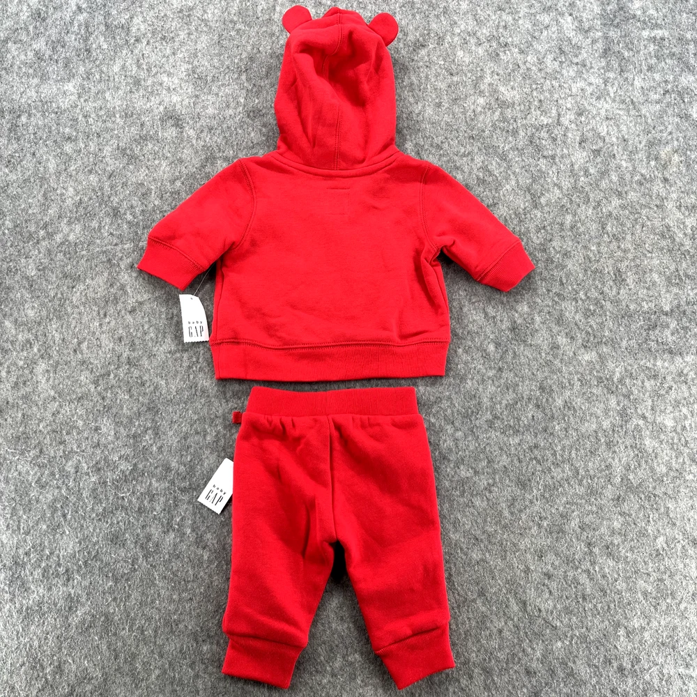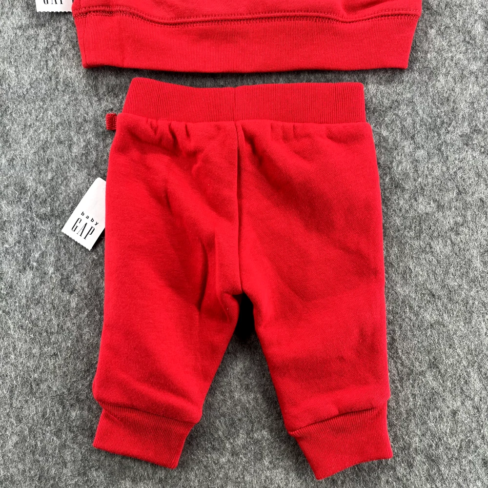 Baby Gap Logo Sweatshirt Bear Hoodie Fleece Pants Set Outfit 0-3M Red NEW