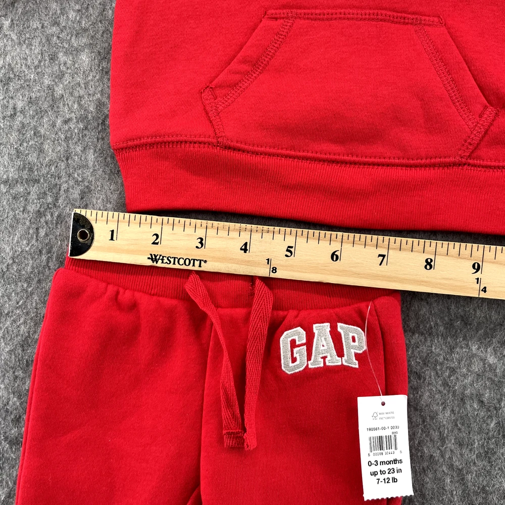 Brand: Gap Style: Pants Set Color: Red Department: Baby Number of Pieces: 2 Piece Occasion: Activewear, Casual, Travel Material: 100% Cotton, 100% Polyester Features: Comfort, Cuffed, Heavyweight, Hooded, Pockets, Ribbed Pattern: Solid Set Includes: Hoodie, Pants Size: 0-3 Months Accents: Logo Theme: Cozy, Bear, Valentine Closure: Zip Sleeve Length: Long Sleeve Fabric Type: Fleece Type: Outfit/Set