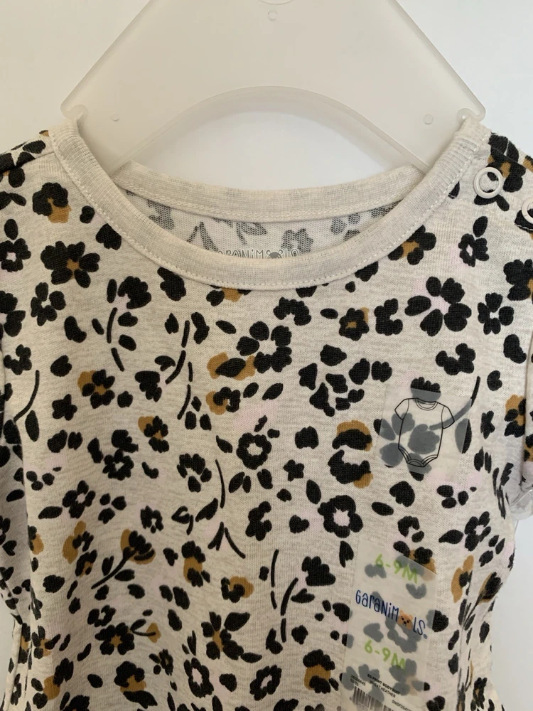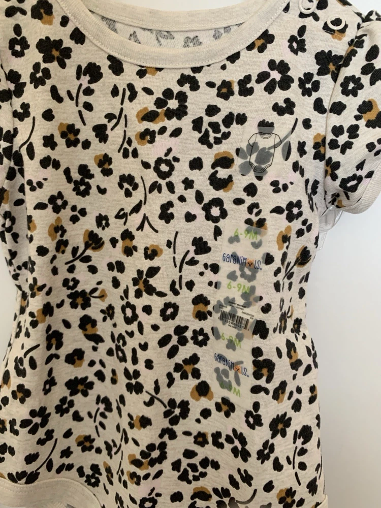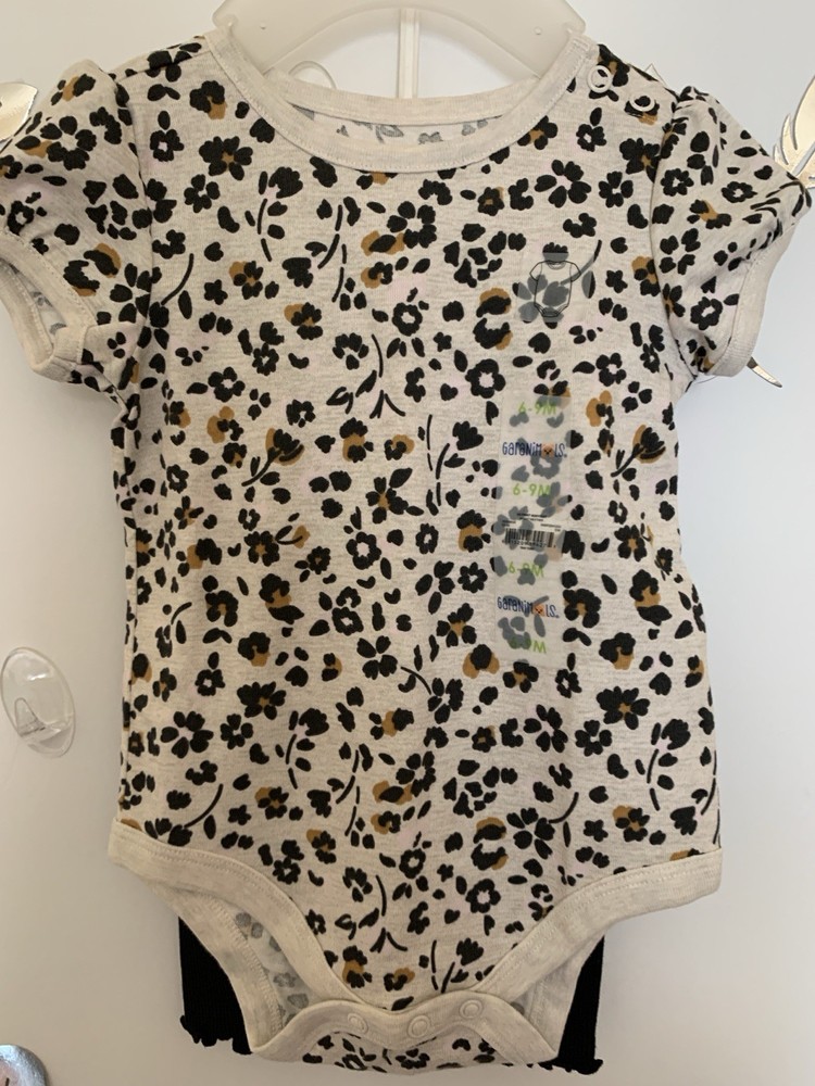 Introducing the stylish Baby Girl 2pc Top & Pants Leggings Set in size 6-9 months. This adorable outfit features a leopard print pattern top with a solid black color leggings perfect for both party and casual occasions. The short sleeve top and leggings are easy to put on with a pull on closure, made of comfortable polyester material that is machine washable for easy care. The cute animal-themed outfit is great for all seasons and has a trendy style that will keep your little one looking fashionable.