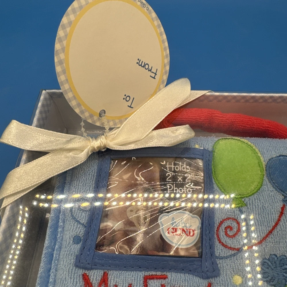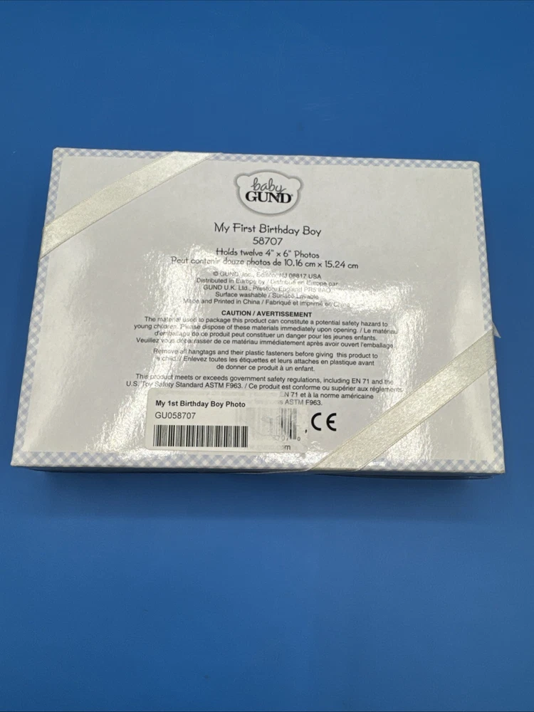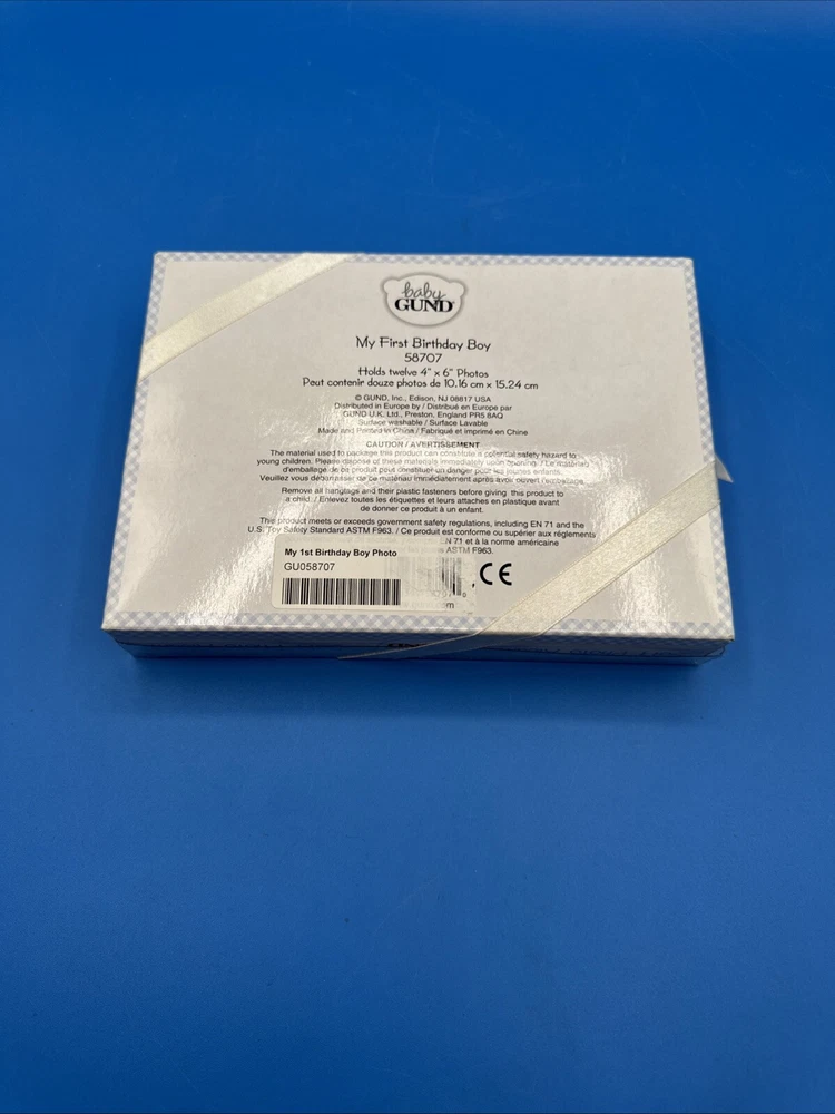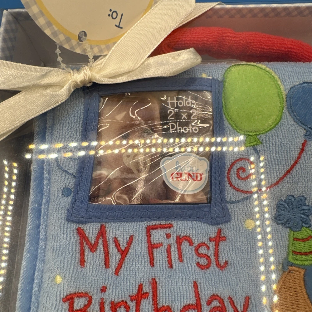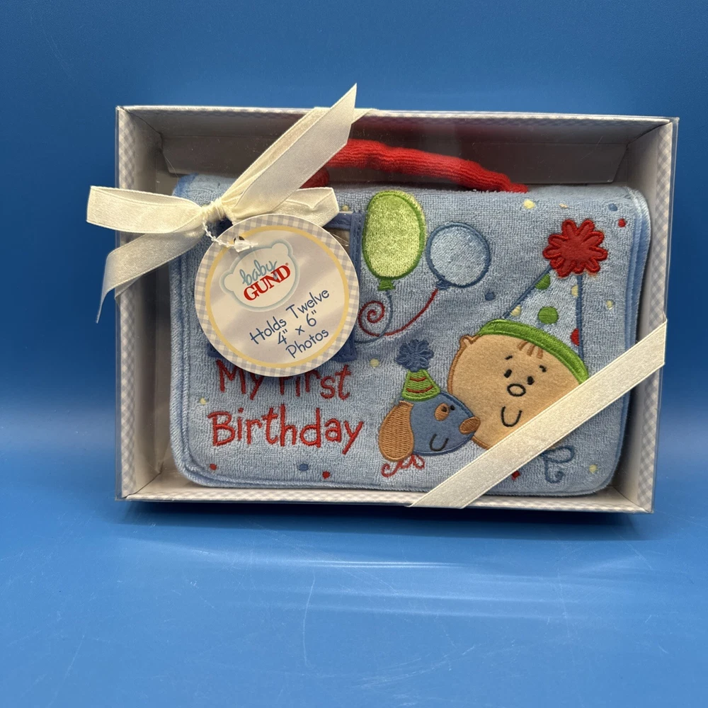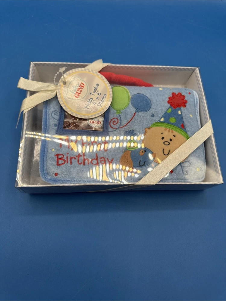 This is a Baby GUND My First Birthday Soft Photo Album designed for boys. It is a keepsake item for parents to store and display photos of their baby's first birthday. The album is specifically tailored for boys and features a soft design, making it a safe and adorable choice for preserving special memories. New in original box. Never been removed or used. Please check the pictures carefully as part of the description. Feel free to ask questions if you need more information before you buy it. Thank you for your interest B-11