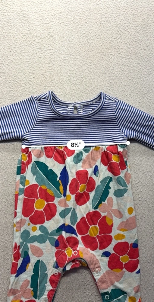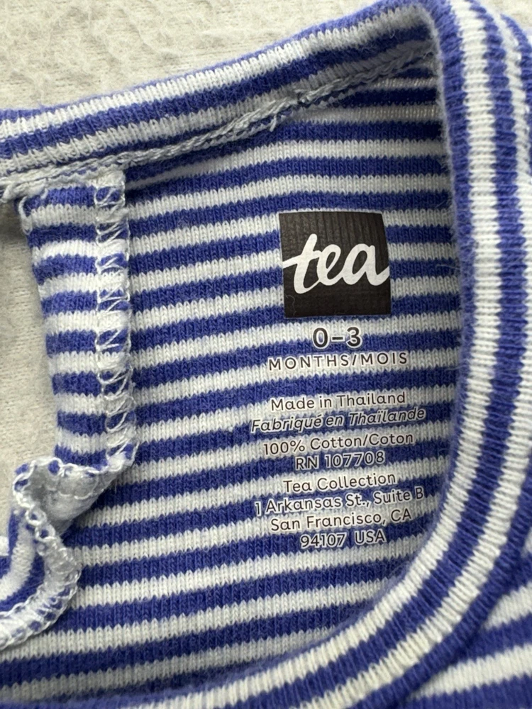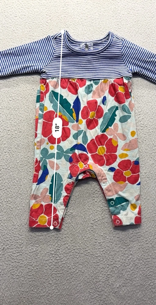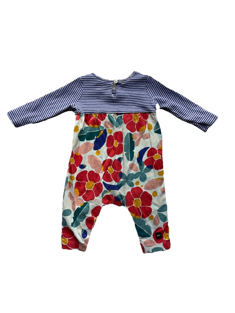 The Baby Tea Collection Floral and Striped Romper is a stylish one-piece outfit perfect for unisex babies aged 0-3 months. Made from soft cotton material, this romper features a charming floral and striped pattern in a colorful design. The brand Tea Collection ensures quality and trendy style for your little one, making this romper a cozy and fashionable addition to your baby's wardrobe.
