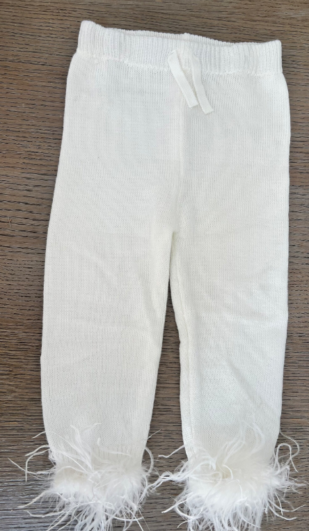 This baby girl off white knit two-piece set is a beautiful and cozy outfit perfect for the colder seasons of winter, fall, and spring. The set includes a long sleeve sweater with a button closure and matching pants, both made from a soft knit fabric. The fur add-on detail adds a touch of luxury to the outfit, making it suitable for both casual and formal occasions. Handmade with care, this layette set is designed for 12-18 months old baby girls and should be hand washed for maintenance.