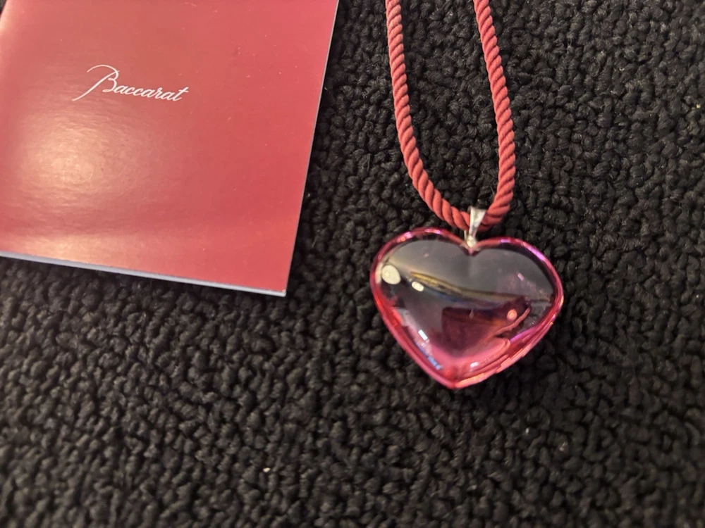 Baccarat Pink Heart Crystal Necklace The description of this item has been automatically translated. If you have any questions, please feel free to contact us. Baccarat crystal pink heart necklace signed with the brand State : very good Come visit our eBay store: https://www.ebay.fr/sts/cristaldecorbaccarat protected and secure shipping world Baccarat crystal pink heart necklace signed with the brand State : very good Come visit our eBay store: https://www.ebay.fr/sts/cristaldecorbaccarat protected and secure shipping world