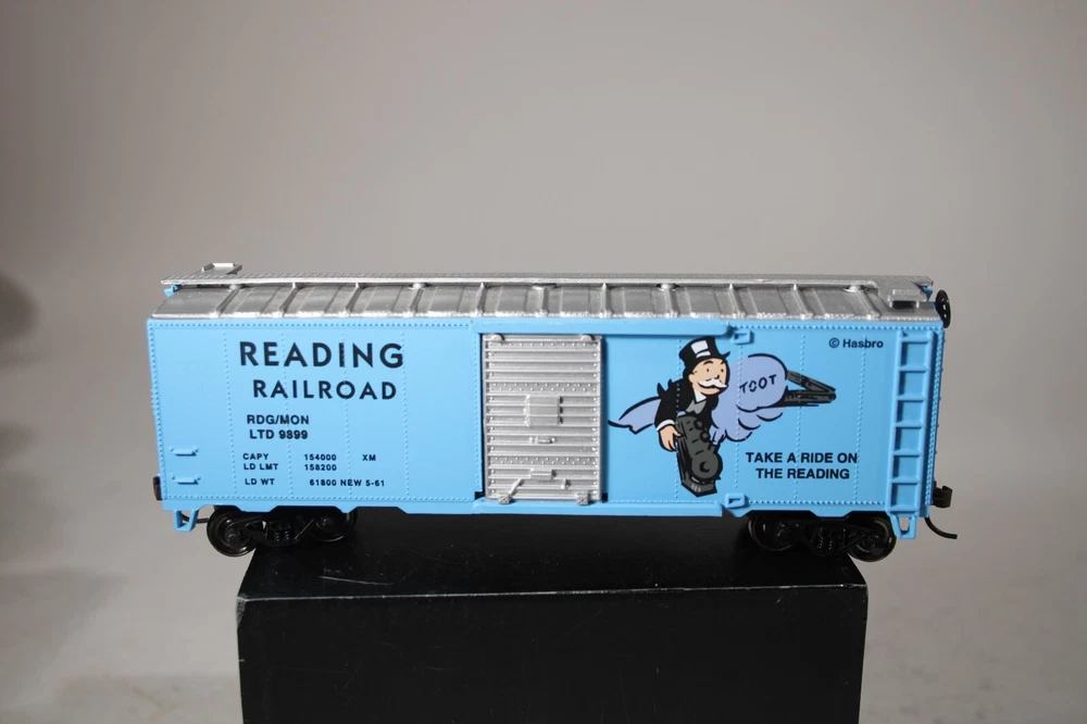 Bachmann HO Scale Monopoly Collector's Edition Train Blue Boxcar 9899 Reading Railroad Combined Shipping : Thanks for bidding!! I will be happy to combine multiple store items and auctions of all types to save on shipping costs - just make your purchases and ask for a combined invoice! Shipping & Tracking: I normally ship within one day of receiving payment and insurance is now included on all domestic packages. Tracking numbers are supplied for all domestic and international Priority packages. Please allow up to 3 weeks for international Priority depending on country. International First Class provides no tracking number and can take up to 6 weeks for delivery depending on country. Returns: I try and describe items conservatively but will make a mistake from time-to-time. If you are unsatisfied for any reason please e-mail. Returns are trouble-free and I pay the postage. Powered by eBay Turbo Lister The free listing tool. List your items fast and easy and manage your active items.