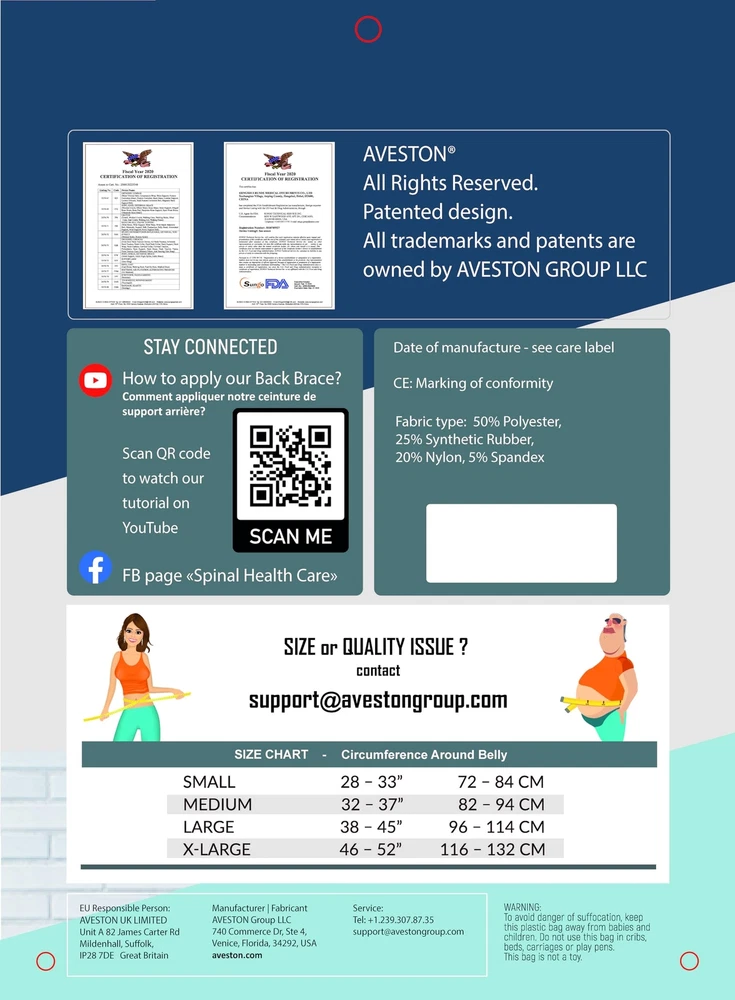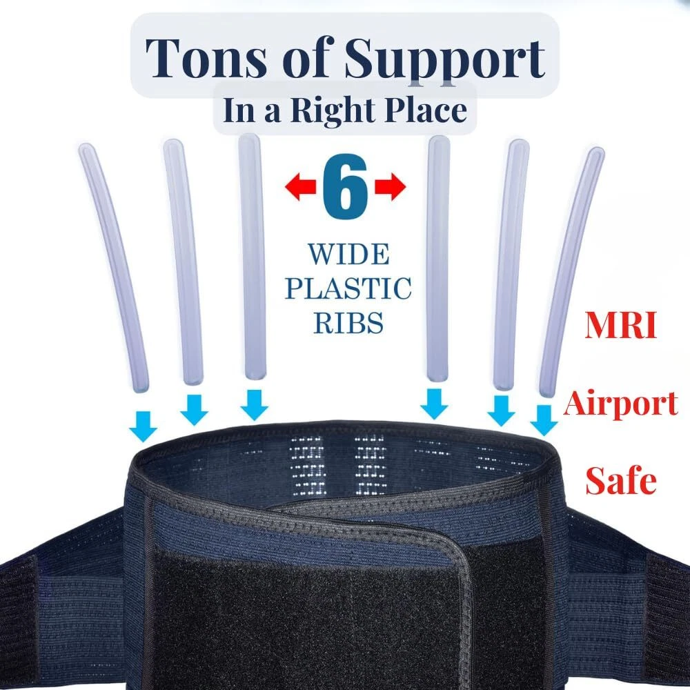 π SIZING IS KEY - LARGE size fits Circumference 38 - 45 inch Around Belly π DONβT SELECT BY PANT SIZE π Please, Don't assume you know your size β Please Please Please make measure before purchasing β Belt Height 8 inch π Better fit Tall torso. Ensure you made measure before purchasing, and you will not go wrong with this purchase β REAL ORTHOPEDIC THIN MATERIAL β Itβs NOT soft and cheap neoprene that makes people sweaty and overheated. belt for back support made of Firm, Breathable, Elastic fabric for effective lumbar support. Its PATENTED thin design without bulky extra fabric layers on your belly β RIGID SUPPORT β 6 wide reinforced plastic bones that are rigid yet stretchy in the right places. with metal stays β this brace is lighter, safe for airport or MRI scans. back brace for lower back pain women and men is Invisible + fits snugly like a glove with tons of support β WIDE COMPRESSION β 3 thin and firm layers of elastic on the sides allows you to adjust compression across the back support brace width. It covers a wide spine area from t12 to s1. Back brace for men lower back stabilizes your core, alleviates pain, and speeds up rehabilitation β BACK PAIN and PREVENTION β lower back support keeps your spine straight and safe. This back support belt for men and women was designed in America by Ukrainian inventor and will return you to a normal life. Feel normal again and heal naturally! β 1-YEAR β we respond for our quality: improved closure system, double stitching on weak parts + 3 level quality control of each unit β thatβs why we give a 1year manufacturer for our back braces for lower back pain men and women. If you have any issues - the seller - β IMPORTANT - Unstrap side belts before wrapping around back belt. If side straps are in the position and not unstrapped - thus making belt shorter and not allowing the whole belt to stretch - This instruction inside the manual comes together with the product.