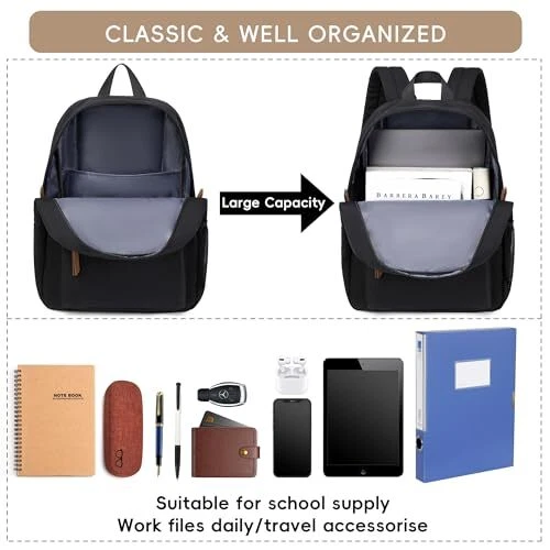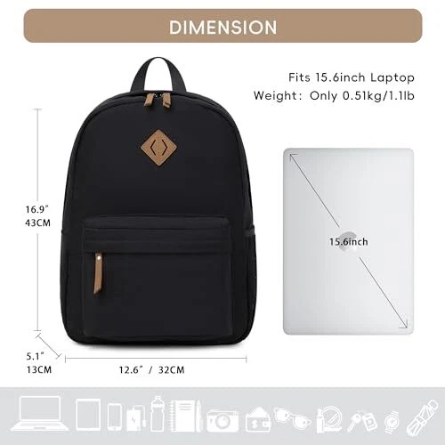 Backpack for Women Men,Lightweight Durable Water-Resistant Pack 15.6 Inch Black