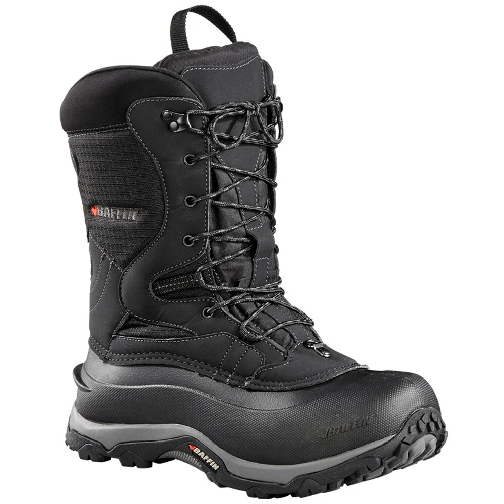 Summit Snow Boots LITEM015-001 Product Details Leather and nylon upper Lace up closure Removable insole EVA midsole Polar rubber outsole Ready for an adventure in the snow? This protective boot will take care of all your comfort and necessities. Featuring a removable multi layer inner boot system with double B Tek insulation and aluminum insole. The waffle comb footbed ensures comfort during long activities, while the Superlite shell ensures protection. The waterproof nylon snow collar supports the inclimate weather of temperatures rating of 5ºC or 41ºF to 50ºC or 58ºF. Additional Details Color: Black Occasion: Casual Gender: Mens Age: Adult Brand: Baffin